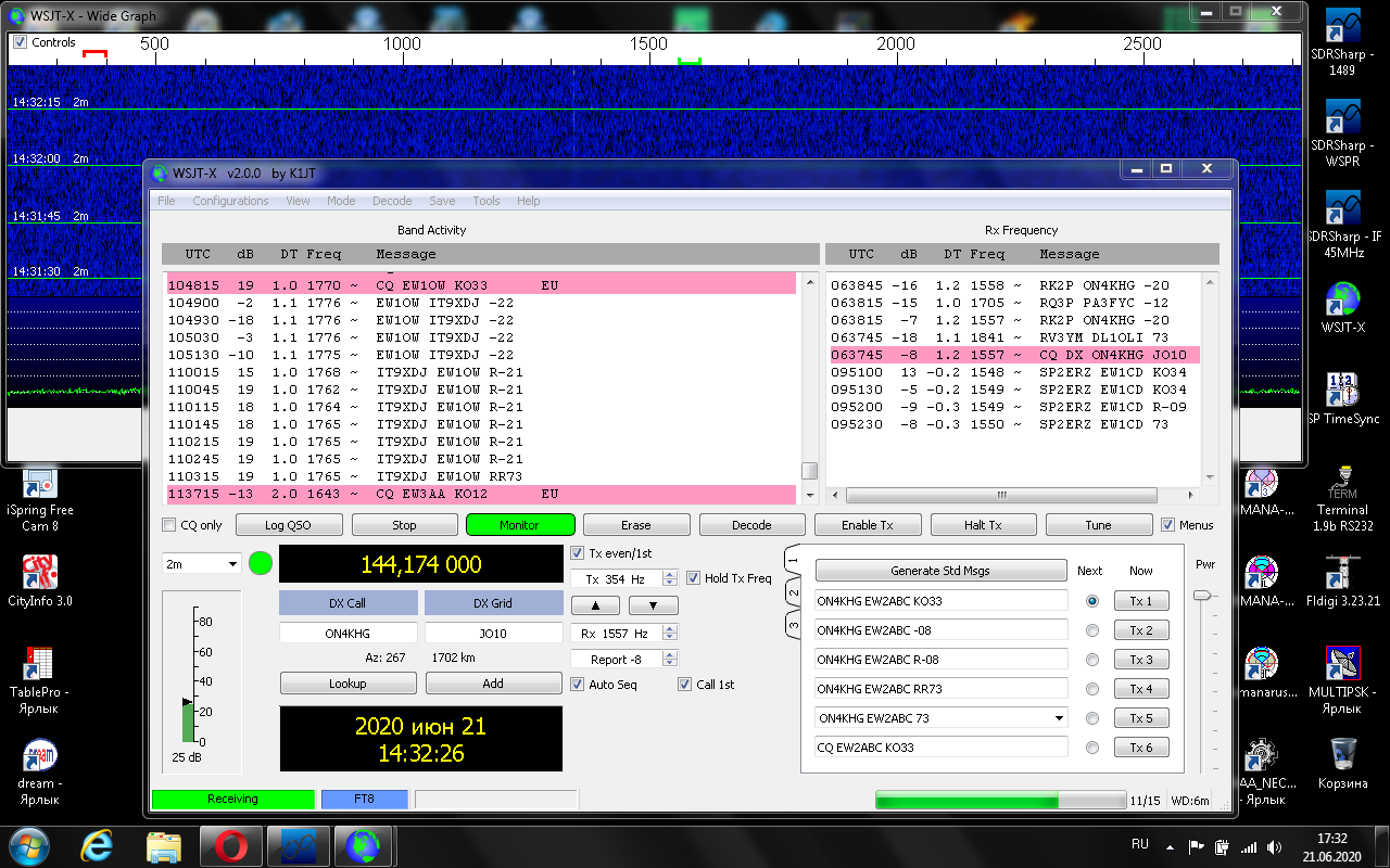 2020-06-21 09:43:44 26min UA6AQN -16db FT8 2m 144.1757 MHz Russia-EU UA KN96VC