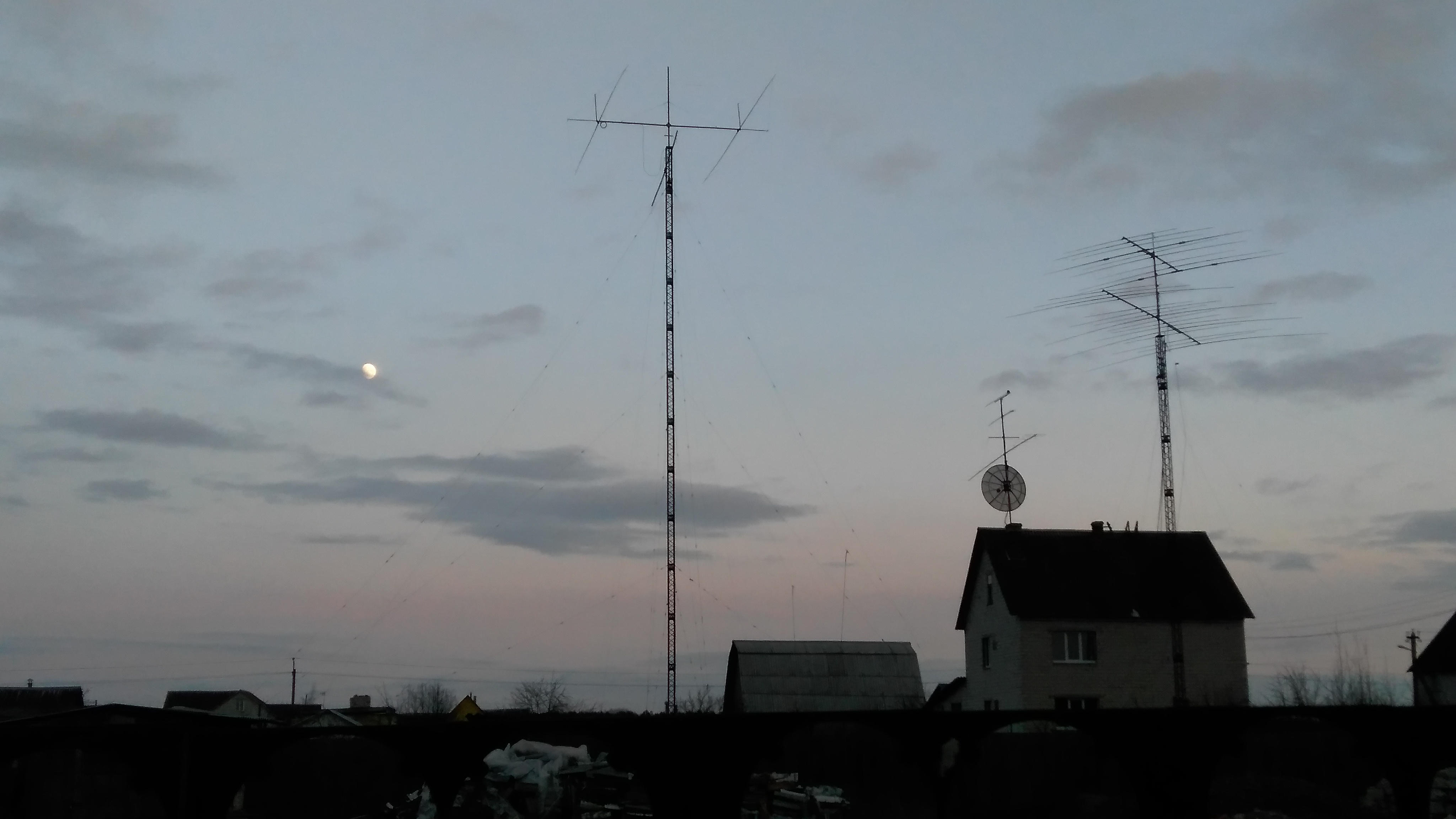 Антенное хозяйство также поменялось. На сегодня имеется трайбендер 4-4-8 от UA2FZ на 20-15-10, трайбендер 2-3-4 от Сов.Антенна на 30-17-12, две вертикальных переключаемых дельты на 80м в направлении В-З и заземленная Унжа высотой 30м с Моксоном на 40м от UA2FZ на макушке в качестве вертикала на 160м. Большое спасибо за расчет обьемного вертикала и дельт Володе RJ3FF.