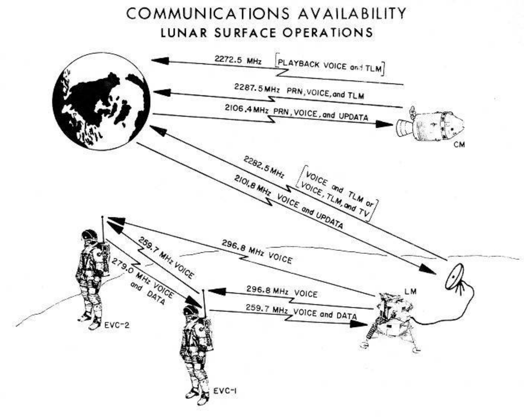 И частоты более менее доступны...Построить приёмник,наверное не составило бы большого труда,особенно на современной элементарной базе.И послушать.Жаль, на Луну больше не летают.