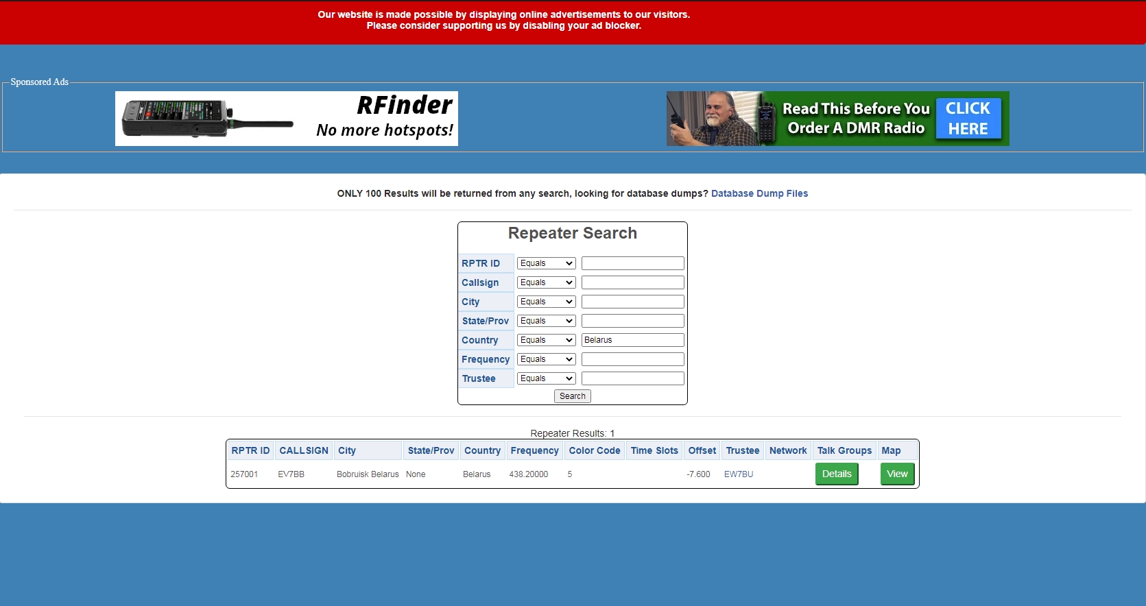 На сайте http://www.radioid.net данные совсем другие.