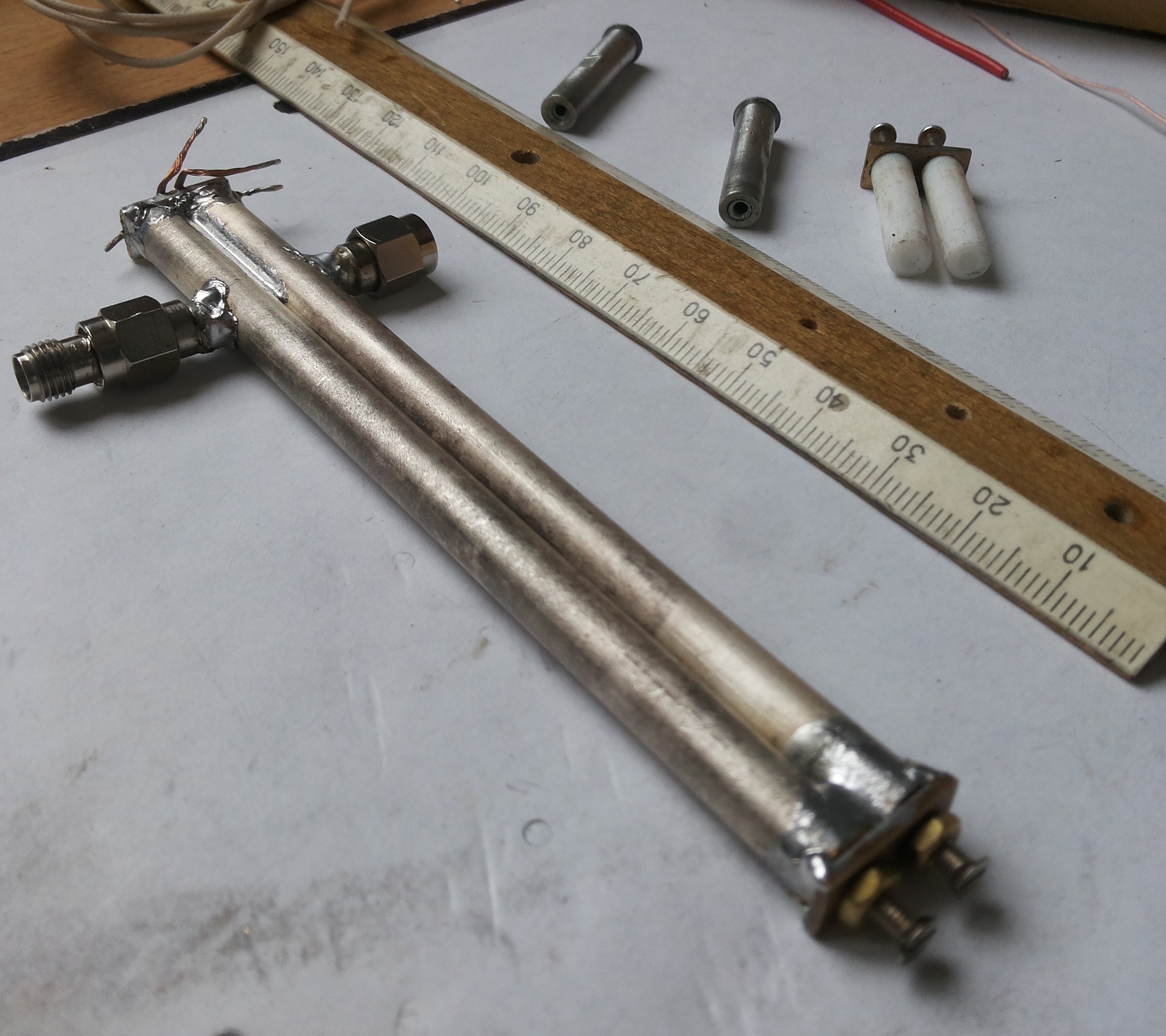Поработал ножовкой и паяльником и сделал образец кавитационного фильтра на частоту 739МГц.