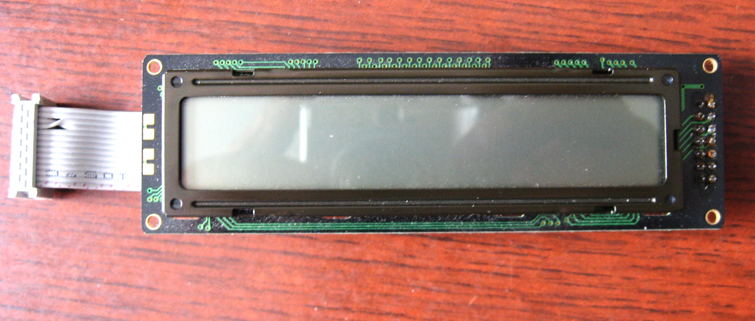Двухстрочный, по 24 знакомест в каждой строке, без подсветки.