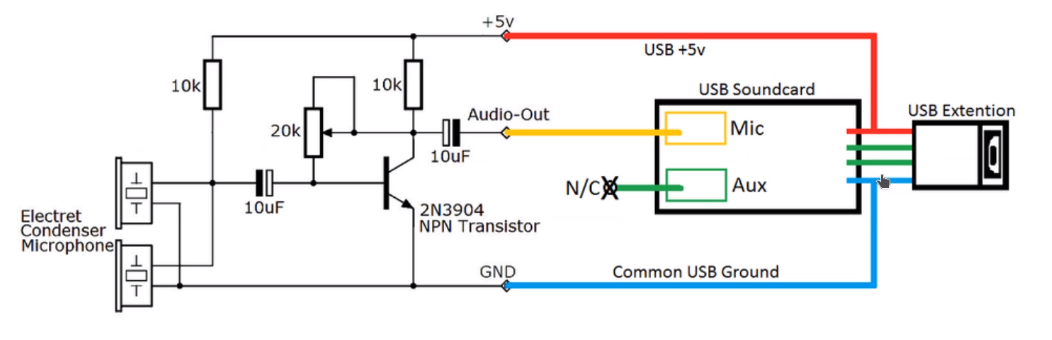 Если тишины нет, то лучше использовать схему с доработкой USB-микрофона НЧ-цепи - экранировать, а