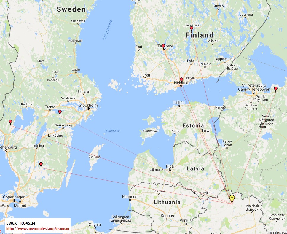 SM7GVF, OH3IH, RX1AS, OH4LA, OH6NEQ, SM6BFE(ODX=1049км) и SK5EW