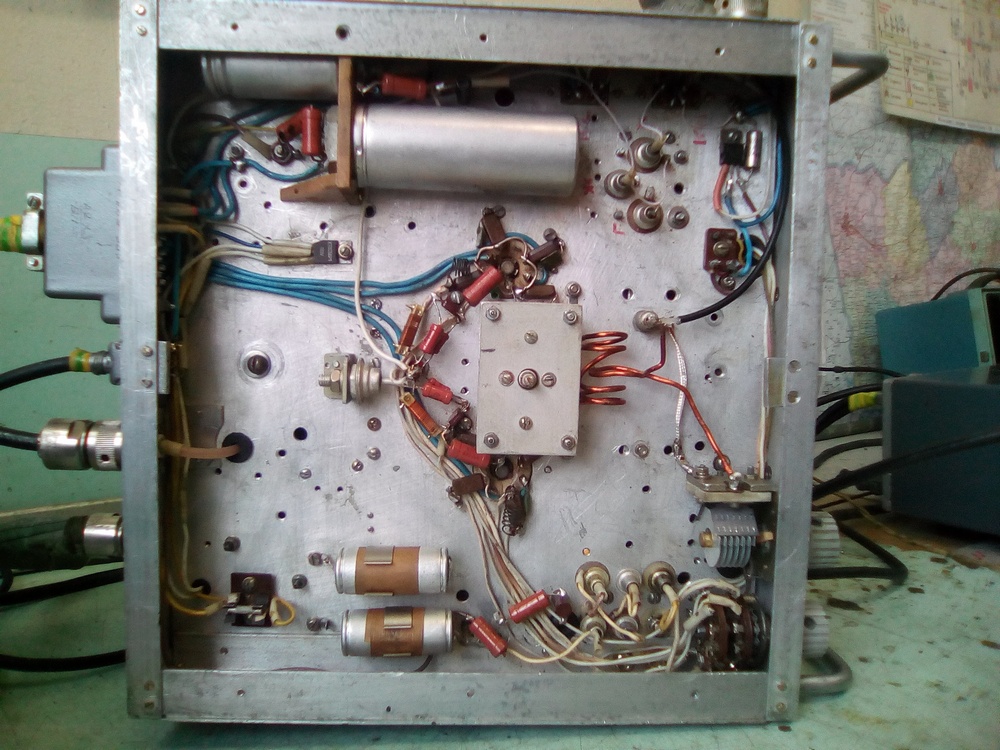 Входной разъём до переделки находился на задней стенке корпуса в подвале шасси,но всё-таки недалеко от выходного разъёма,хоть и в противоположном конце панели.Естественно, при таком уровне вых. мощности между ними не могло не возникнуть паразитной связи.Которая выражалась в том,что при определённом положении ручек настройки,не обязательно в резонансе,при снятии входного сигнала усилитель анодный ток не падал,а ещё больше возрастал.Стрелки приборов ложились вправо до пределов,дозволенных природой.При увеличении "возбуждения"ток падал.Входной разъем был резко перенесён на боковую стенку корпуса,ближе к входным цепям.Оптимально было бы на переднюю,но дизайн был бы нарушен.И,интересно,после этой переделки появился явно выраженный резонанс входной цепи,который раньше надо было искать с трудом.