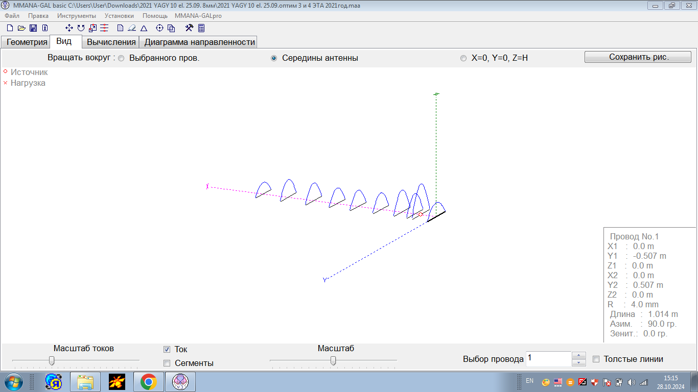Выкладываю скрины экрана расчёта антенны в" MMANA".Хотя, "суха теория,мой друг...(с).А что теперь по-другому? Вы принимали меня через Луну?Усилитель тот же.Переделана только связь с антенной.Подробности,если интересуют,завтра.