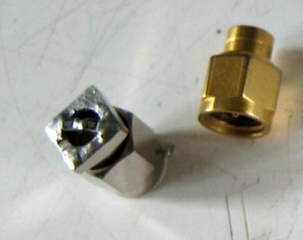 1.Корпус китайских SMA (по крайней мере те, что покупал) отлит их алюминия, в отличие от фмрменных Amphenol - латунных.