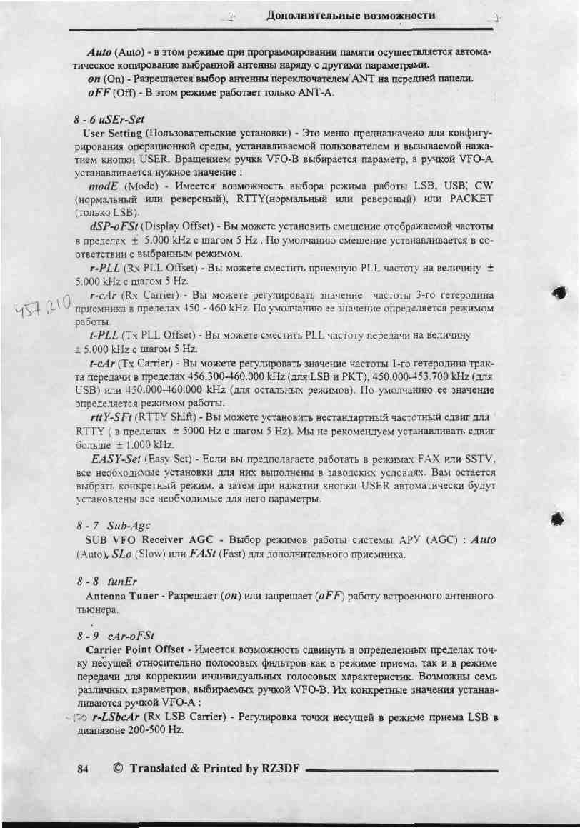 Эти регулировки опору сдвигают в полосу пропускания, в моем случаи и -200 маловато, меню 9-0, можно сдвинуть больше, но это не выход,на сколько сдвигаешь опору в полосу, на столько-же сужается нужная боковая полоса. Видимо надо смотреть 2-ой, или 3-ий гетеродин. В LSB звучит класс, при USB ухо не радует.