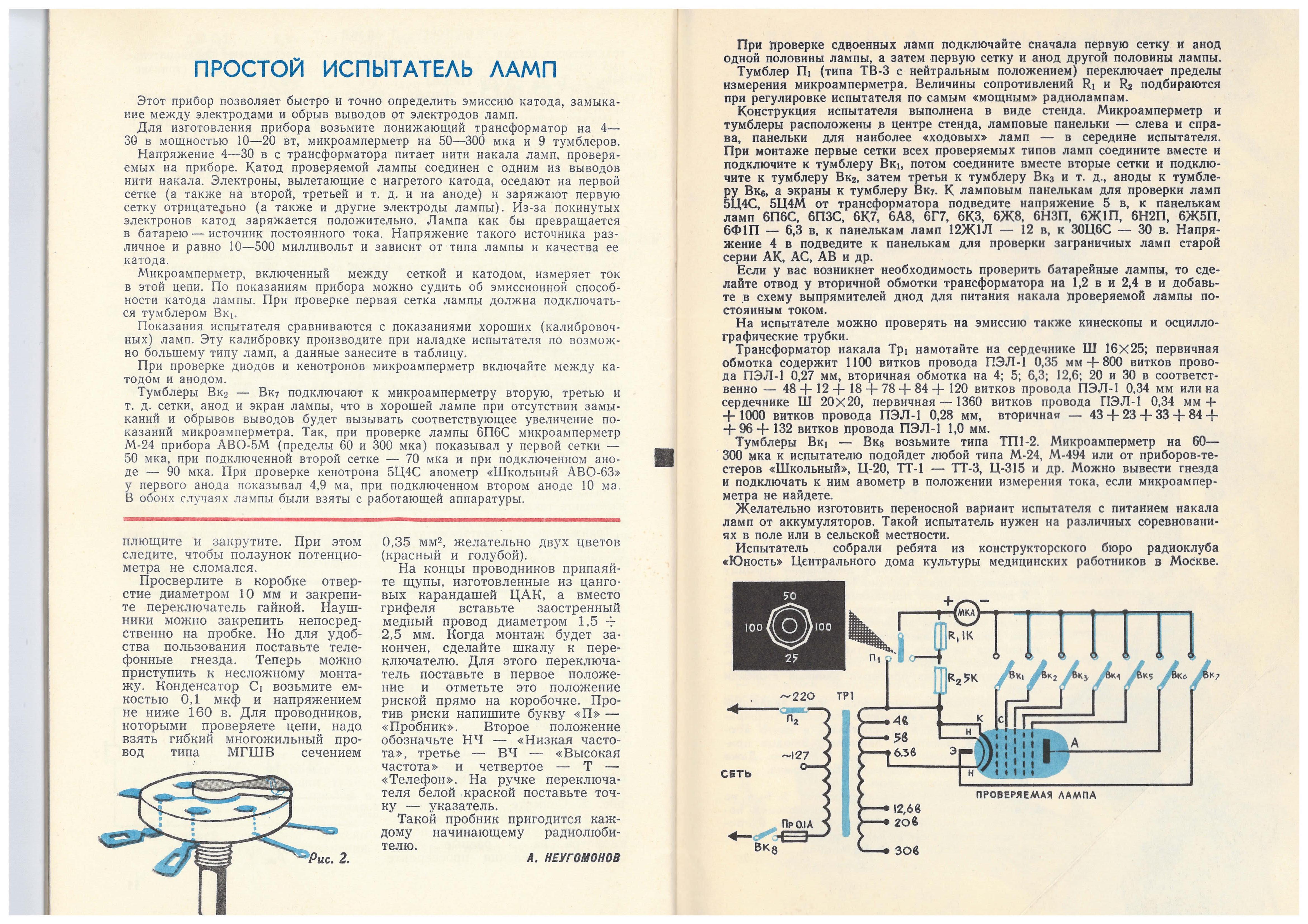 Делал такой, подбирал в пару лампы по эмиссии. Очень сильно помогло...YOZ11 писал(а):Простой испытатель эмиссии ламп