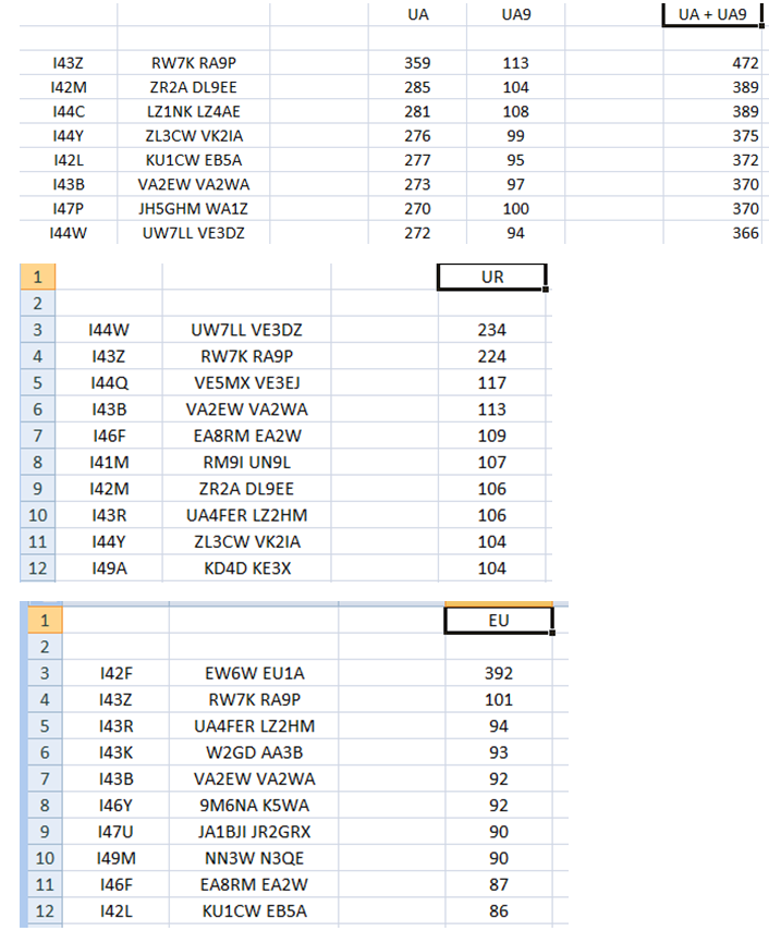 I44W (UW7LL, VE3DZ), I43Z (RW7K, RA9P) и I42F (EW6W,EU1A).