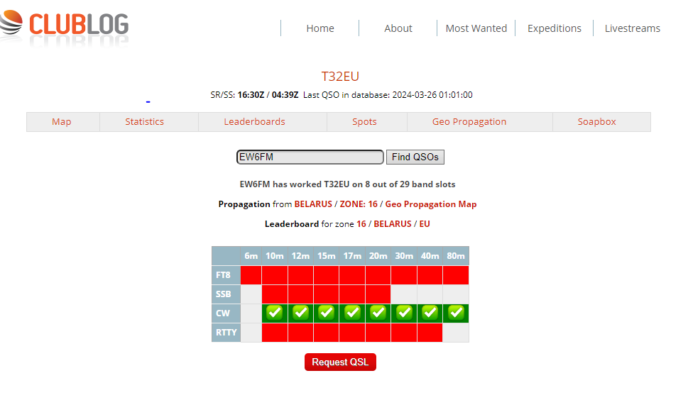 можно увидеть когда и на каком диапазоне сработали с моей страны, с 16 зоны и соседних стран с экспедицией.