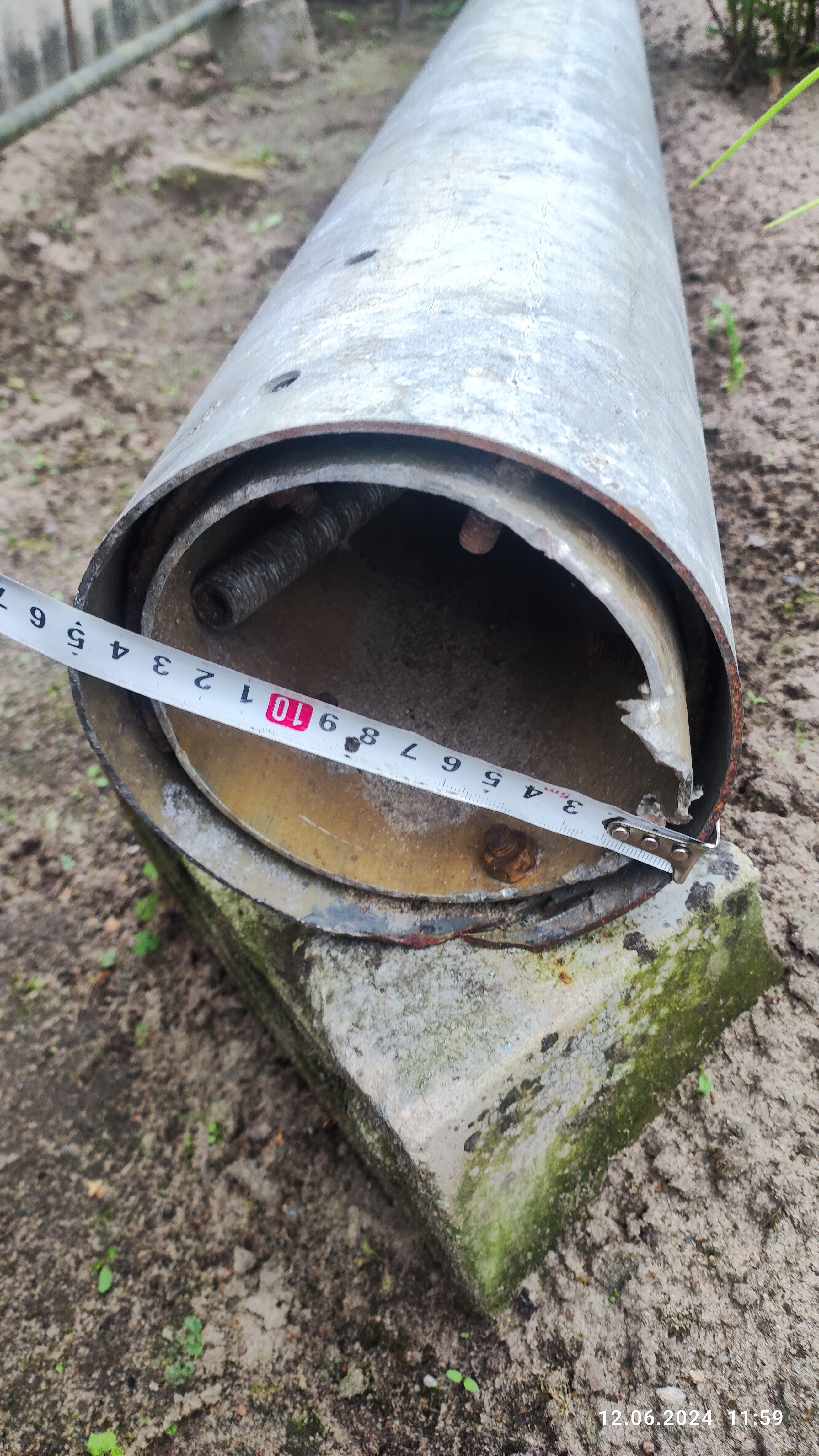 Продам дюралевую трубу диаметром 150мм.длина трубы 4 метра 40 сантиметров.в нутри трубы находиться ещё одна труба диаметром 120мм.длину внутренней трубы не известная.