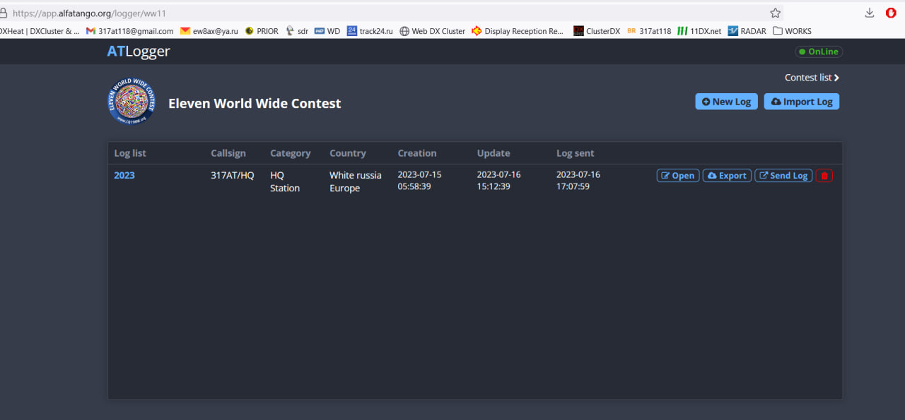 после регистрации, зайти на сайт с онлайн- логом, выбрать Eleven World Wide Contest и можно приступать к участию