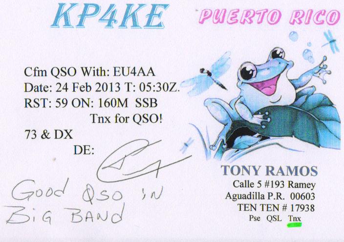 На больничном решил заняться ХВОСТАМИew1do писал(а):получил QSL от KP4TF ...... вид немного смутил, а может набраться наглости и отправить в зачет DXCC на 160 ???????