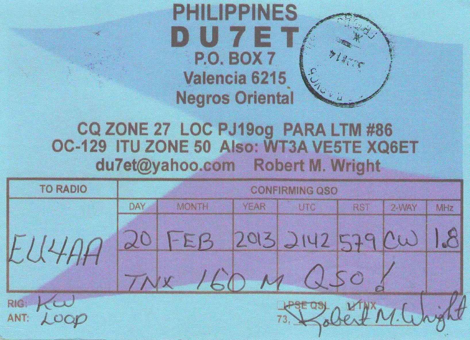 Видимо и на Филлипинах похожая ситуация. Посылал SASE (т.е. конверт с оплатой обратной отправки), конверт, наверное, в мусорку, а QSL - как почтовая открытка.