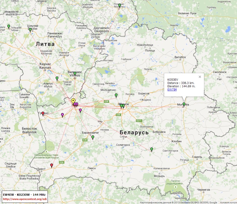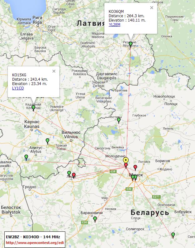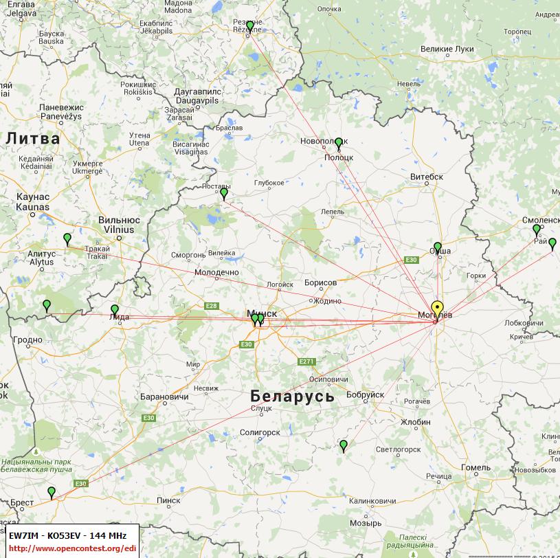 Карта связей в дне активности на 144 от Анатолия EW7IM. ODX= 455 км EU3AI.