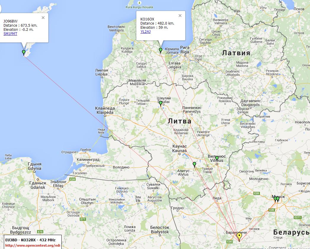 Карты связей за июньский тур на 432 от Георгия EU1AI и Анатолия EU3BD.