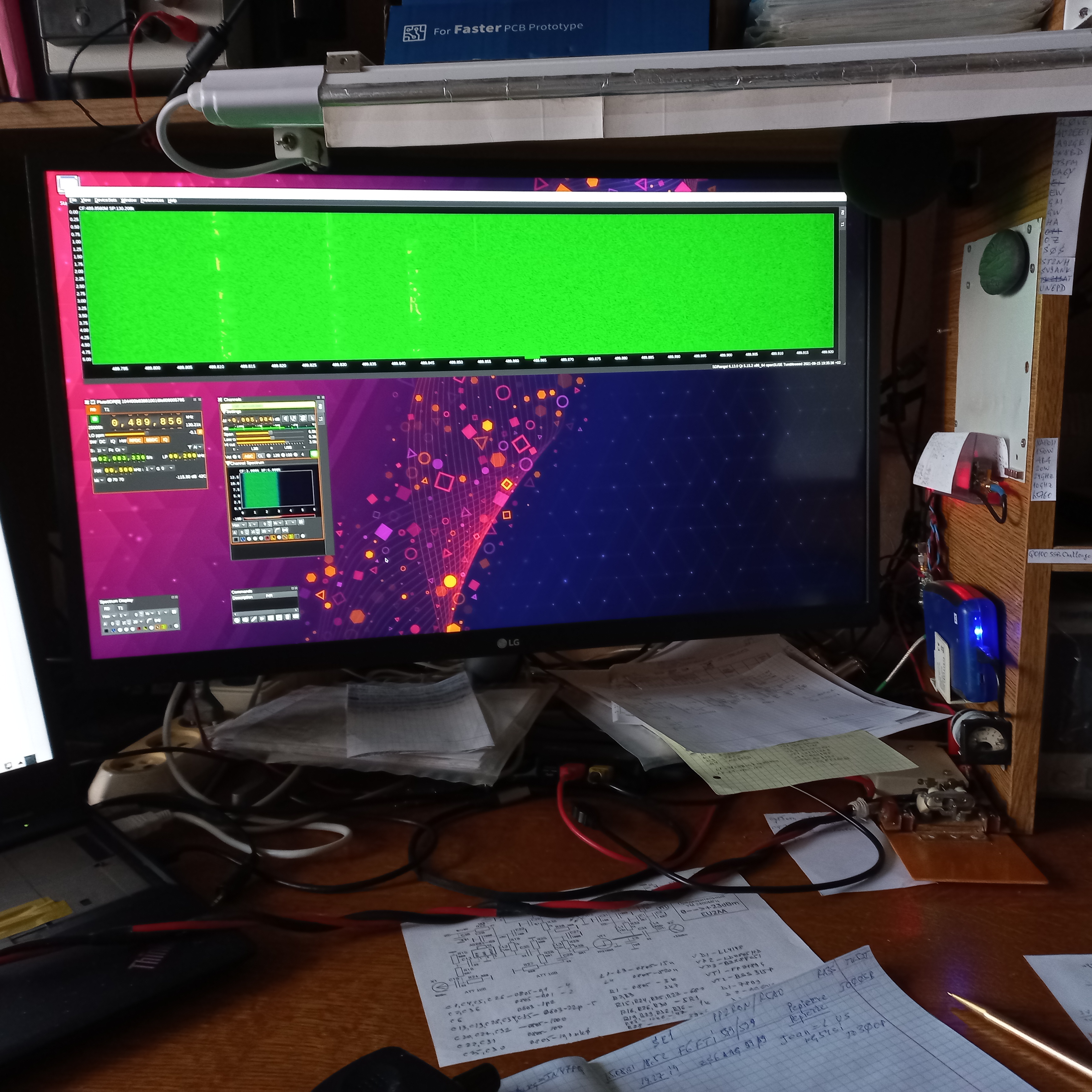 Трансивер SDR на базе PLUTO, панорама, на большой внешний монитор - аппаратный журнал CQRLOG, экспортировал мой отчет в формате ADIF, с помощью конвертера перевел в формат Cabrillo. 30300 очков.