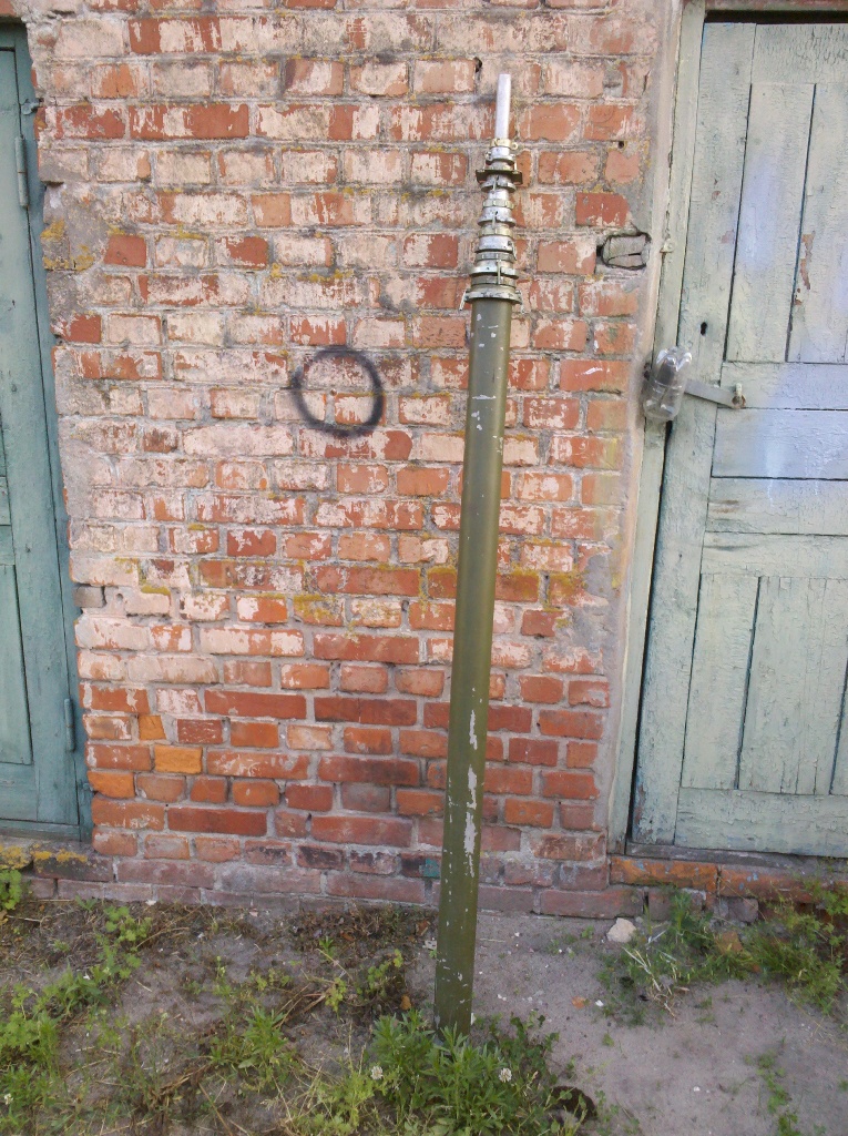 Длина в сложенном состоянии 2метра, диаметр верхнего колена 28мм, нижнего 80мм, общая высота около 10.5-11 метров