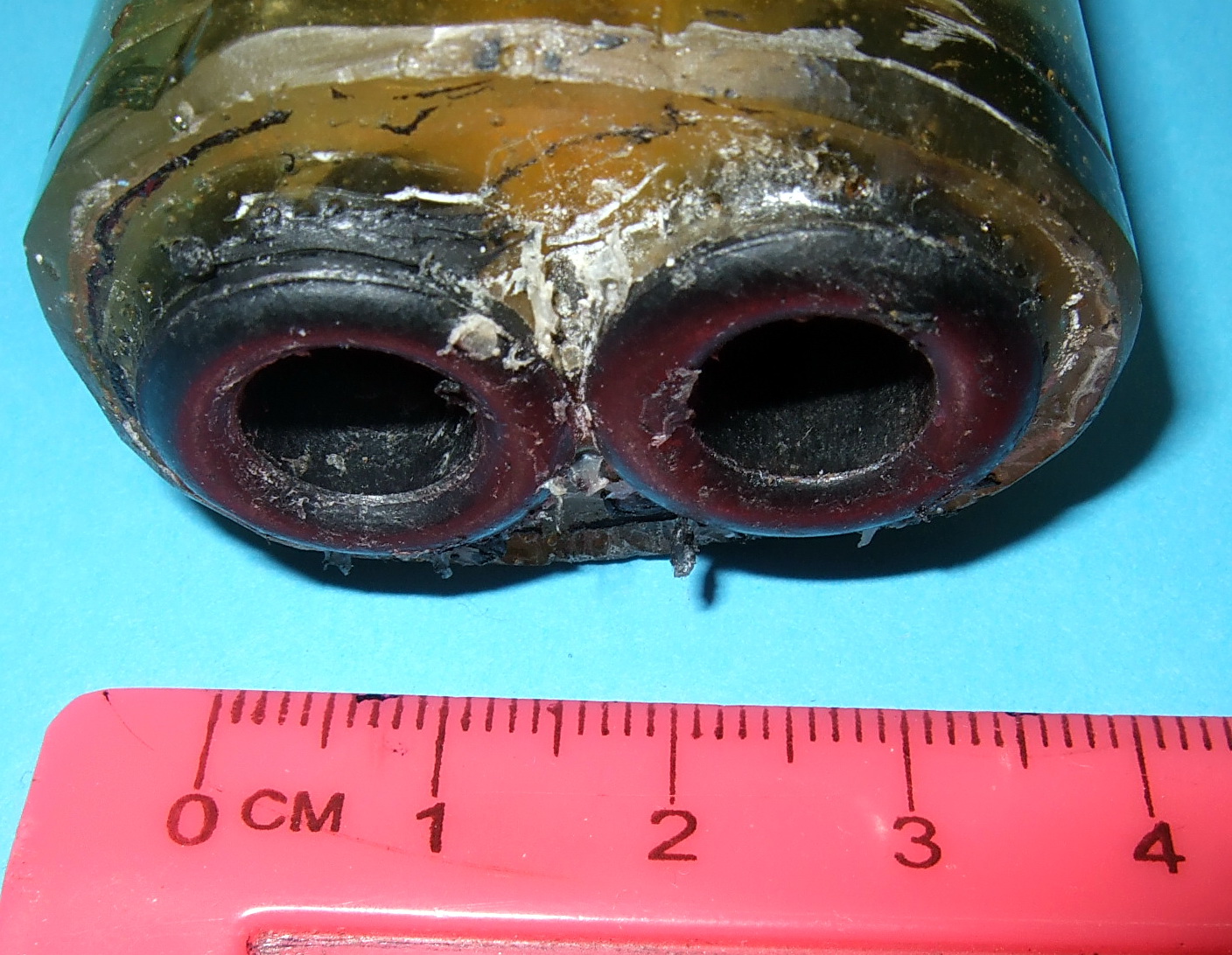 Снял сгоревший трансформатор с антенны. Как и предпологал КЗ во вторичной обмотке, там где на выходе