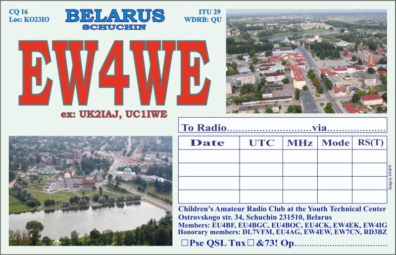Команда Щучинского Объединения "Радиоклуб", созданного осенью 2013 года, при ГУО "ЩРЦТТ" была представлена начинающими, но уже "обстрелянными" :-): на УКВ соревнованиях "Неман-ФМ 2015" операторами EW4WE/P Николай Майко, EW4WE Кирилл Мальцев. Лина Чайко, входящая в эту же возрастную группу (2004-2005 г.р.) представляла коллективку EW4WE одновременно и от Гродно, где проживает с родителями, и от Щучина, где уже не первое лето проводит у бабушки, активно работая в эфире на радиостанции. Активную помощь и поддержку, и уже не первый раз, оказал DL7VFM Achim из Берлина, о чем свидетельствуют фото-сессии этого года и прошлых лет...