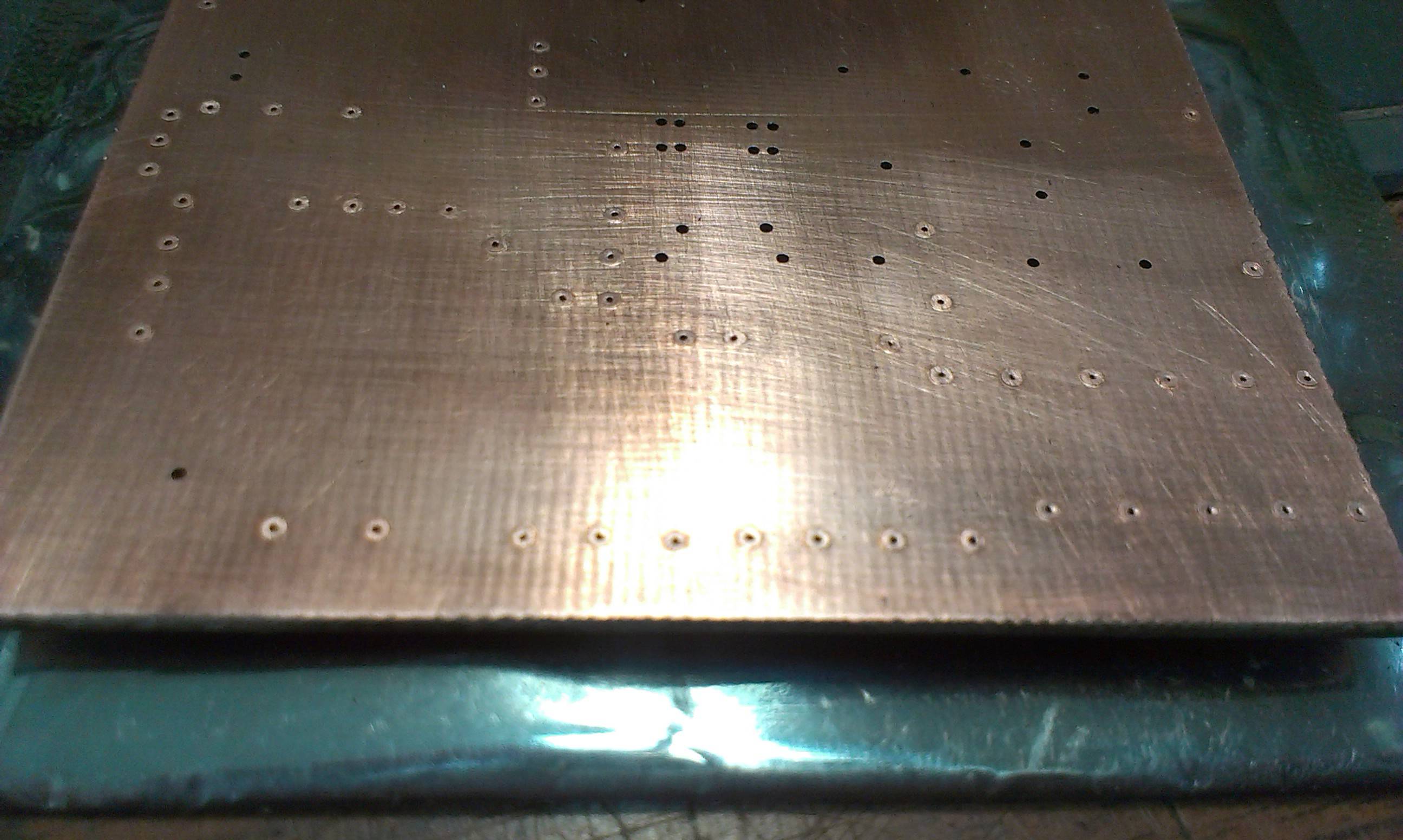 Несколько фотографий в процессе сборки у RX3DR и EU2TT. На фото видны заклепки, которые мне подсказал использовать Александр RX3DR в качестве межслойных перемычек - это очень удобно!! Заклепки Ф 0,9 мм покупались на Aliexpress. Платы с зеленой маской, это также самодельные - Руслан EU2TT постарался !