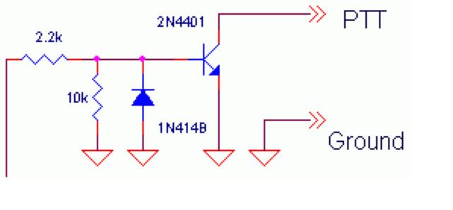 Ключ для коммутации передатчика. Сигнал можно взять с контактной площадки (возможно потребуется перешивка радио если там есть такая функция) или напрямик со светодиода, что не совсем удобно, так как передатчик заработает от любой помехи. Транзисторы - любые n-p-n типа на соответствующее напряжение (я как то использовал КТ-315Г), диоды можно заменить на КД521 или аналогичные. Если не получится коммутировать напрямик транзистором - после него можно добавить небольшое реле (как то использовал РЭС-49), так даже надежнее :).