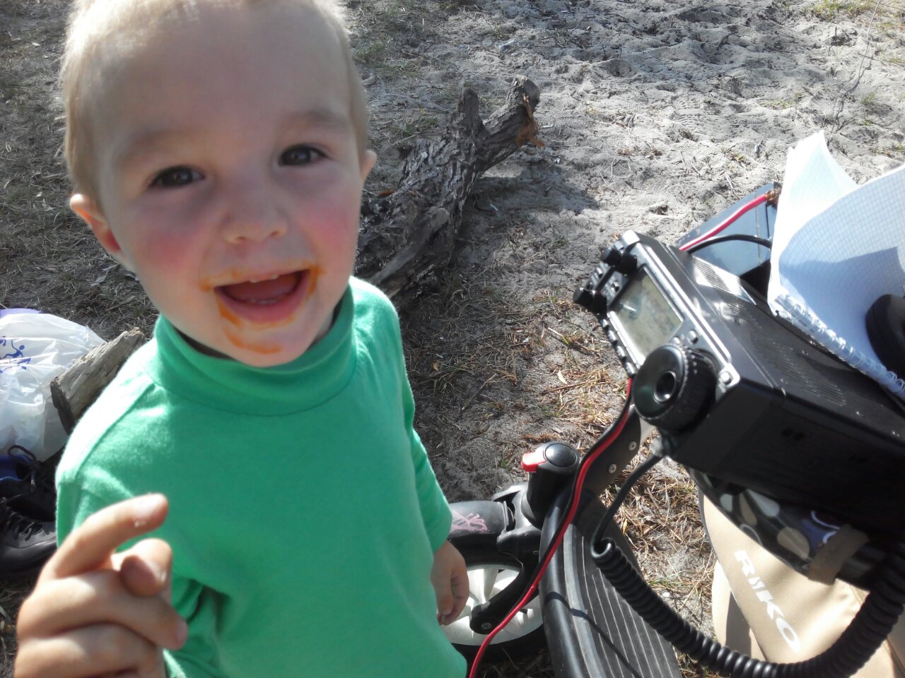 Если уж пошли полевые выезды, тогда вот так :) На фото EW8RX/младший, Тимоша, активно знакомится с полевой позицией :)