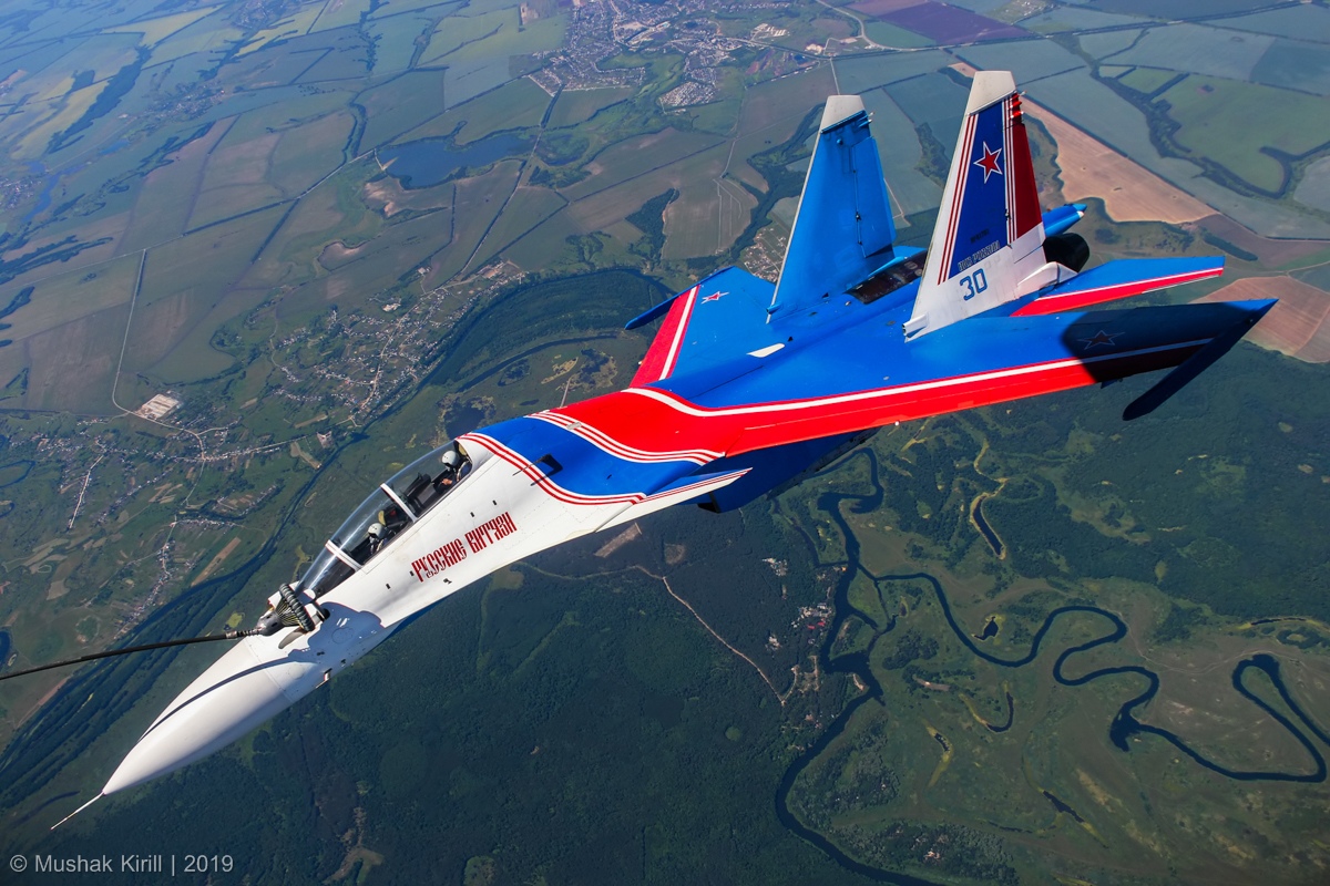 Предположительно, четыре переданных ВКС последних истребителя Су-35С по програме гособоронзаказа 2018 года с красными бортовыми номерами с "14" по "17" также были перегнаны в Бесовец.