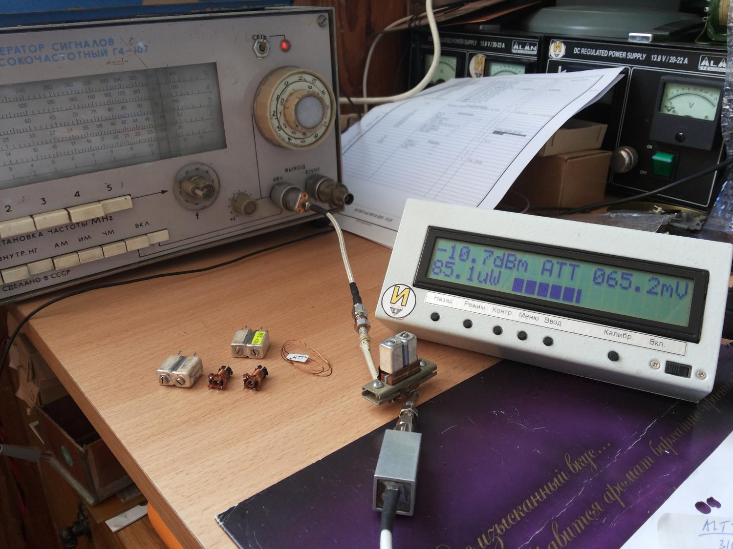 Фильтры перед запайкой в плату полезно проверить по параметрам. Для этого нужно сделать колодку из двух полосок розетки МРН, либо другого разъема с подходящим шагом: что позволит меняя число витков, оперативно измерять параметры фильтра Собственно проверка параметров с помощью генератора и любого индикатора на выходе либо VNA