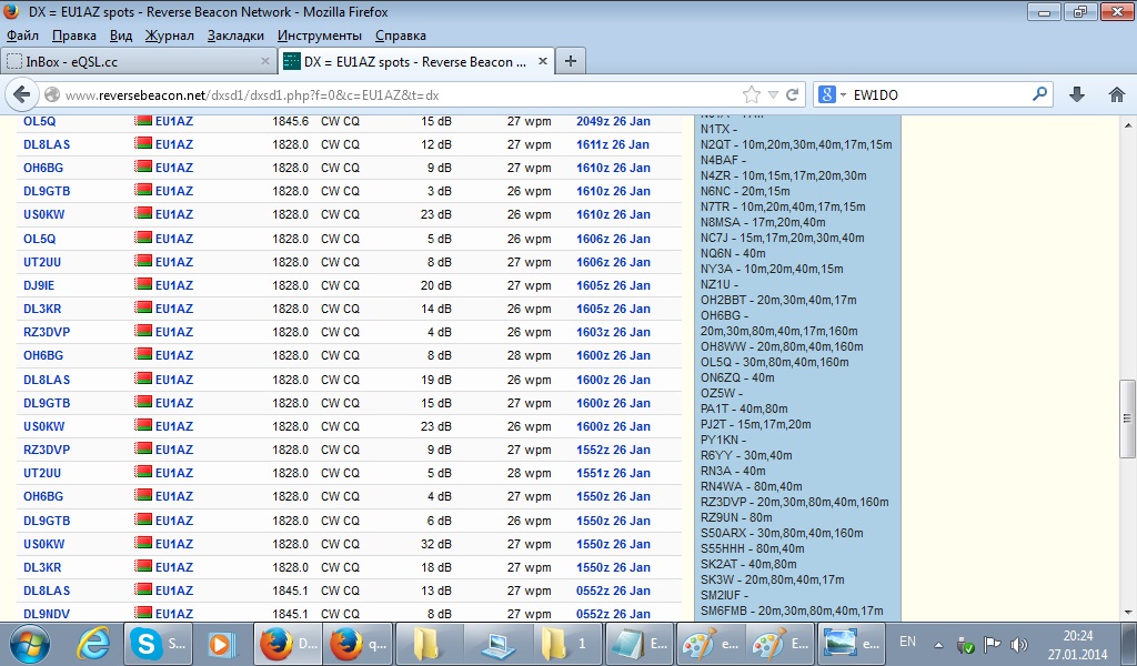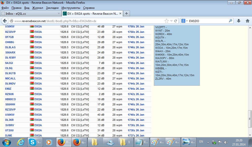 периодически слушал белорусов НА ЧАСТОТАХ DX-sss.. :-): (по моему списку наших было 20 человек) ... хорошо работали приемные антенны у EW8DJ ... как ТАНК отработал EW4AA (интересная была связь у него на частоте BA5CW ... при этом сам китайца я так и не услышал :du_ma_et: ) ...ПЛЮС ТЕСТА - отработал новую страну...