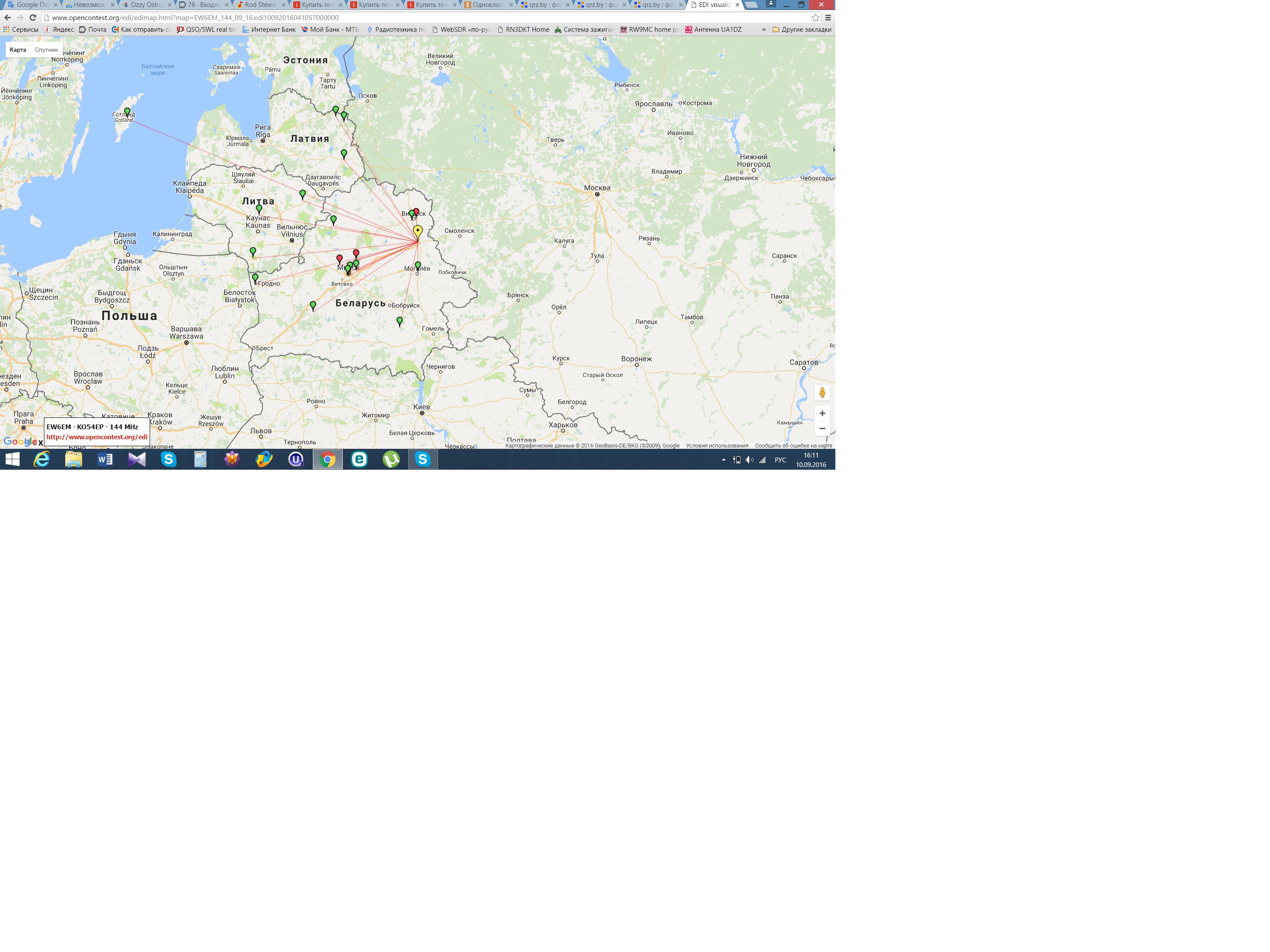Провел 20 QSO. Карта связей: