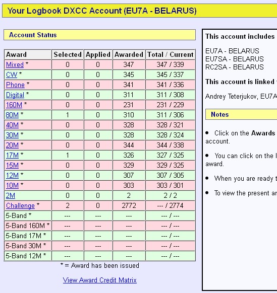 А сегодня уже опубликованы офицальные данные.Андрей поздравляю!EU7A писал(а):Сегодня подал очередную и последнюю в этом году заявку (28 связей) на DXCC через LoTW - обработка заняла 1,5 часа времени после начала работы штаб-квартиры ARRL. Очень оперативно и сохранено одно дерево (или очень толстая ветка) для потомков