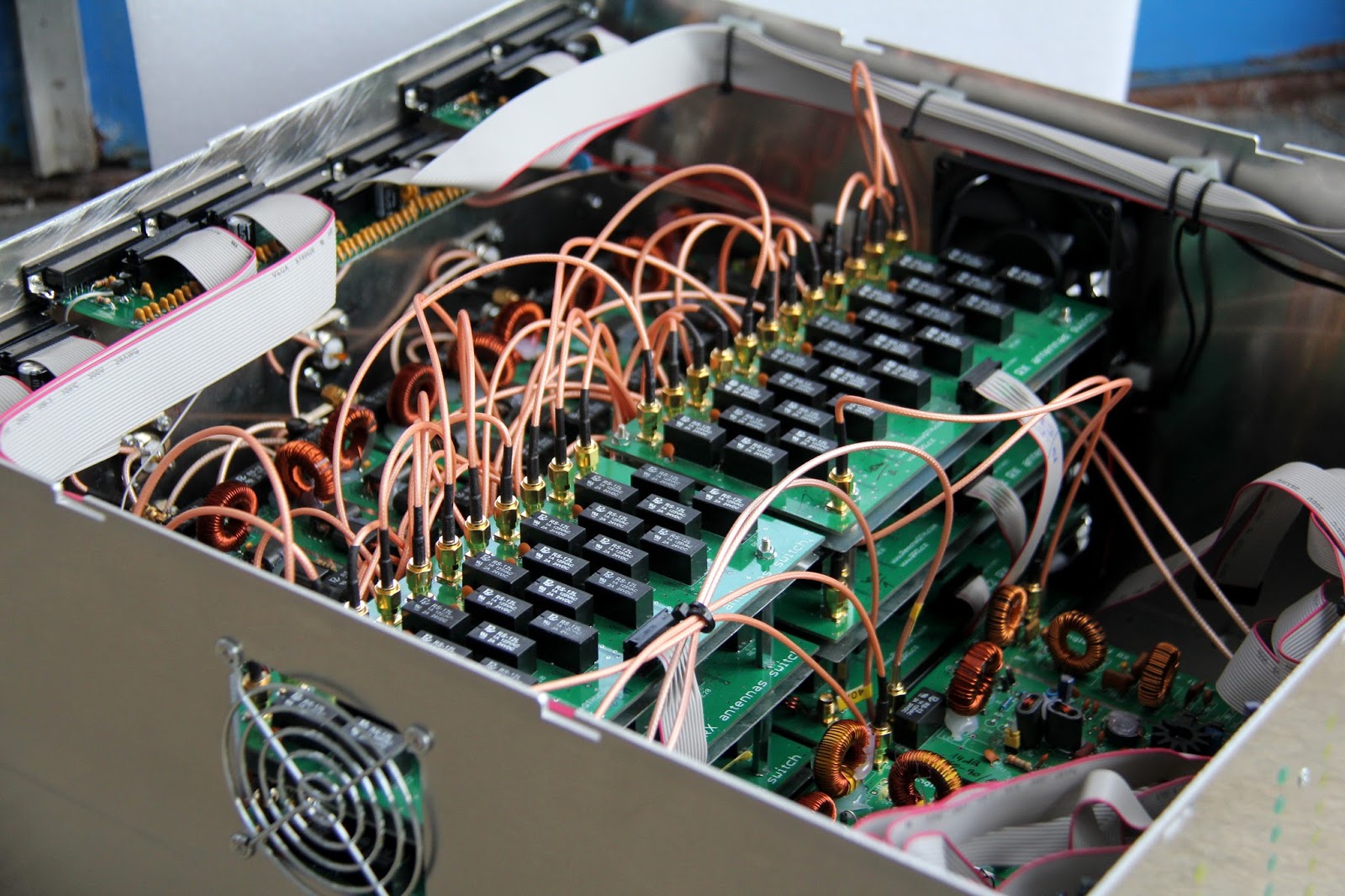 Валерий , смотря как делать. Посмотри фотку и можешь сделать свой вывод.eu6ml писал(а): не верю что такая развязка получилась. У меня измерения показали 56 дб на в1в, у вас наверно будет меньше так как реле и портов больше.
