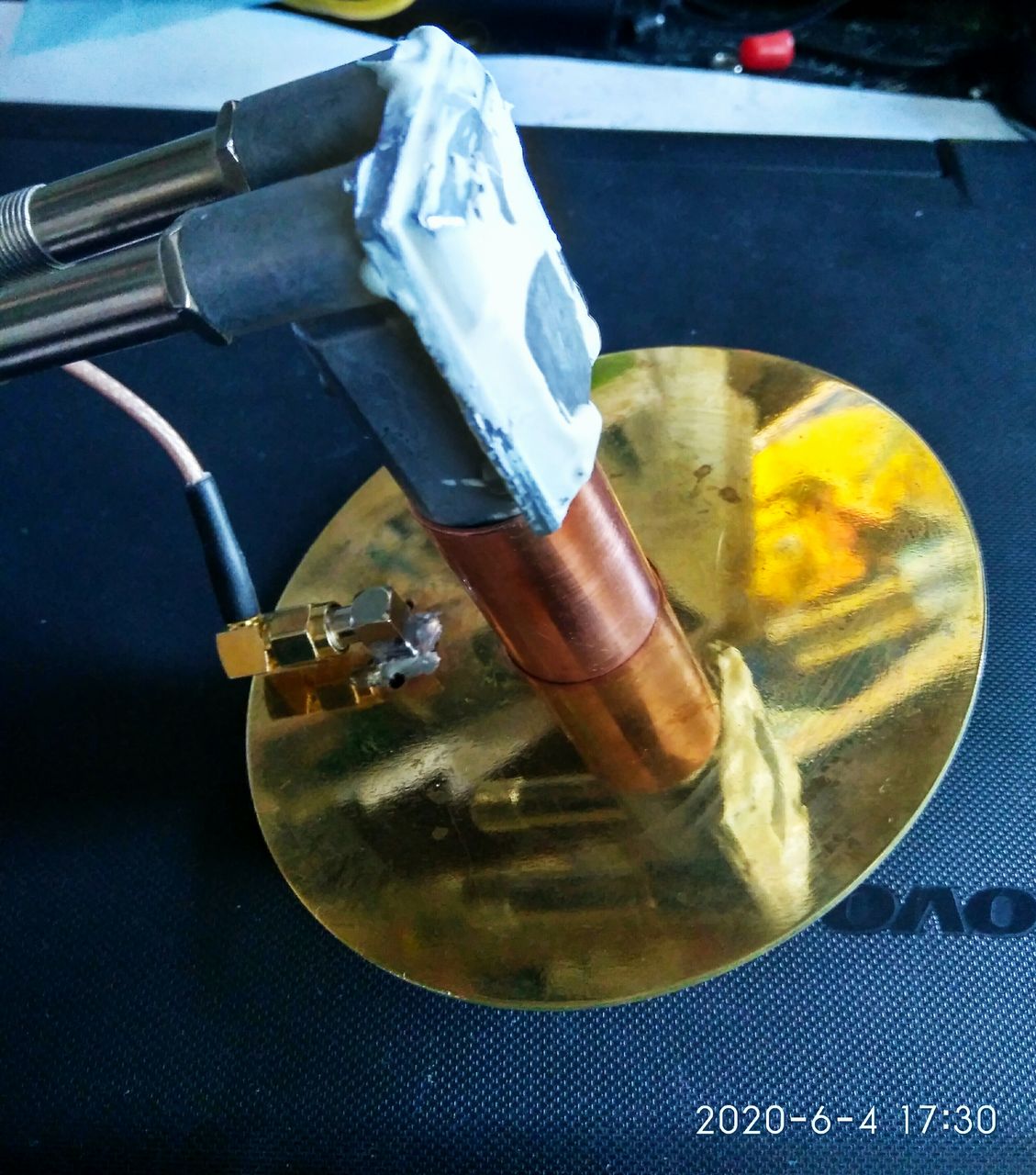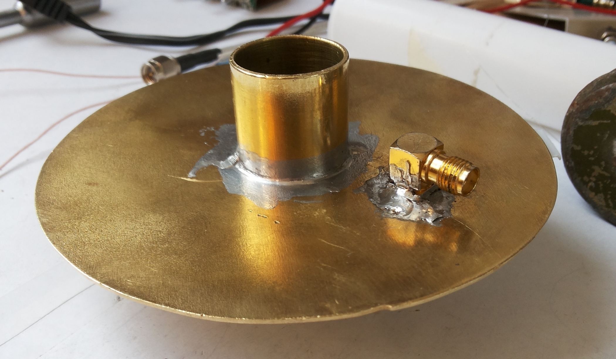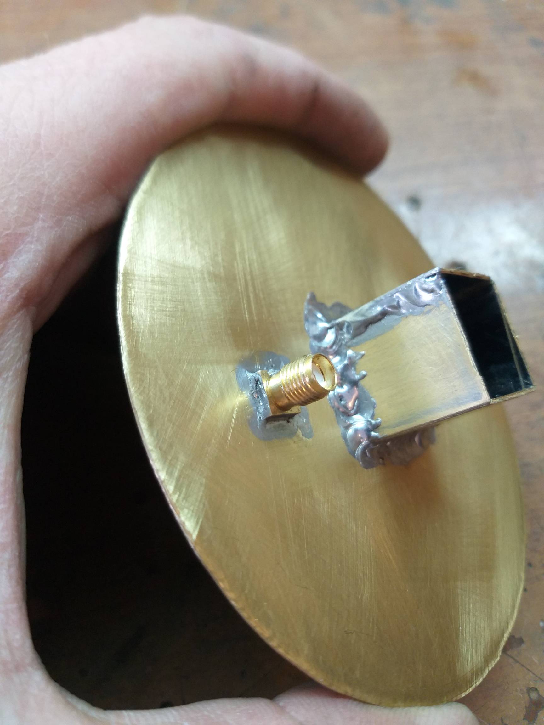 3.Напаял на рефлектор разъем СМА, а на его центральный вывод - штырь: