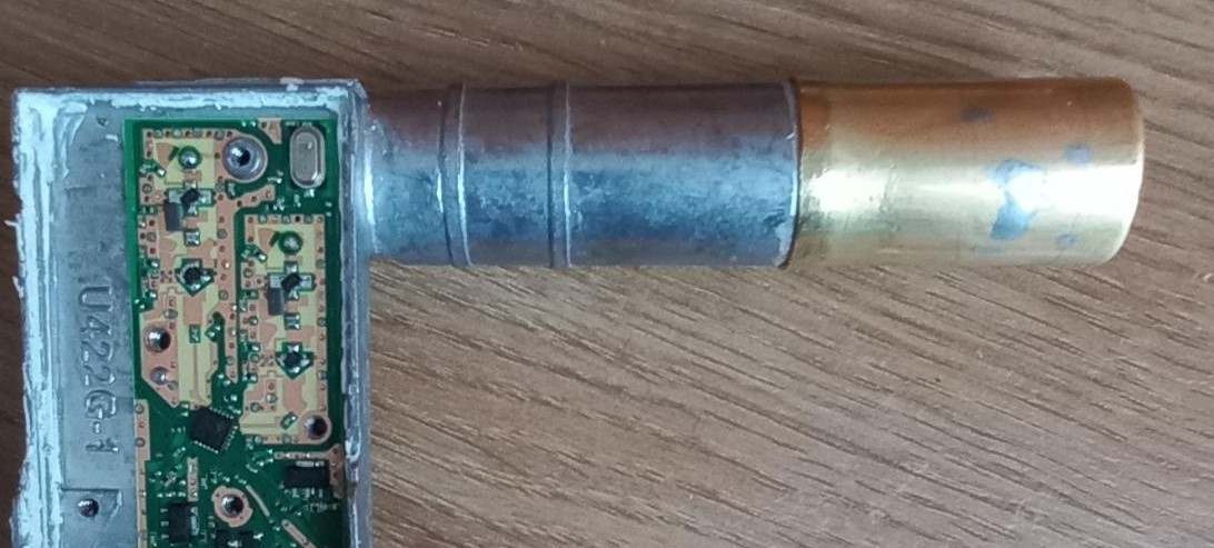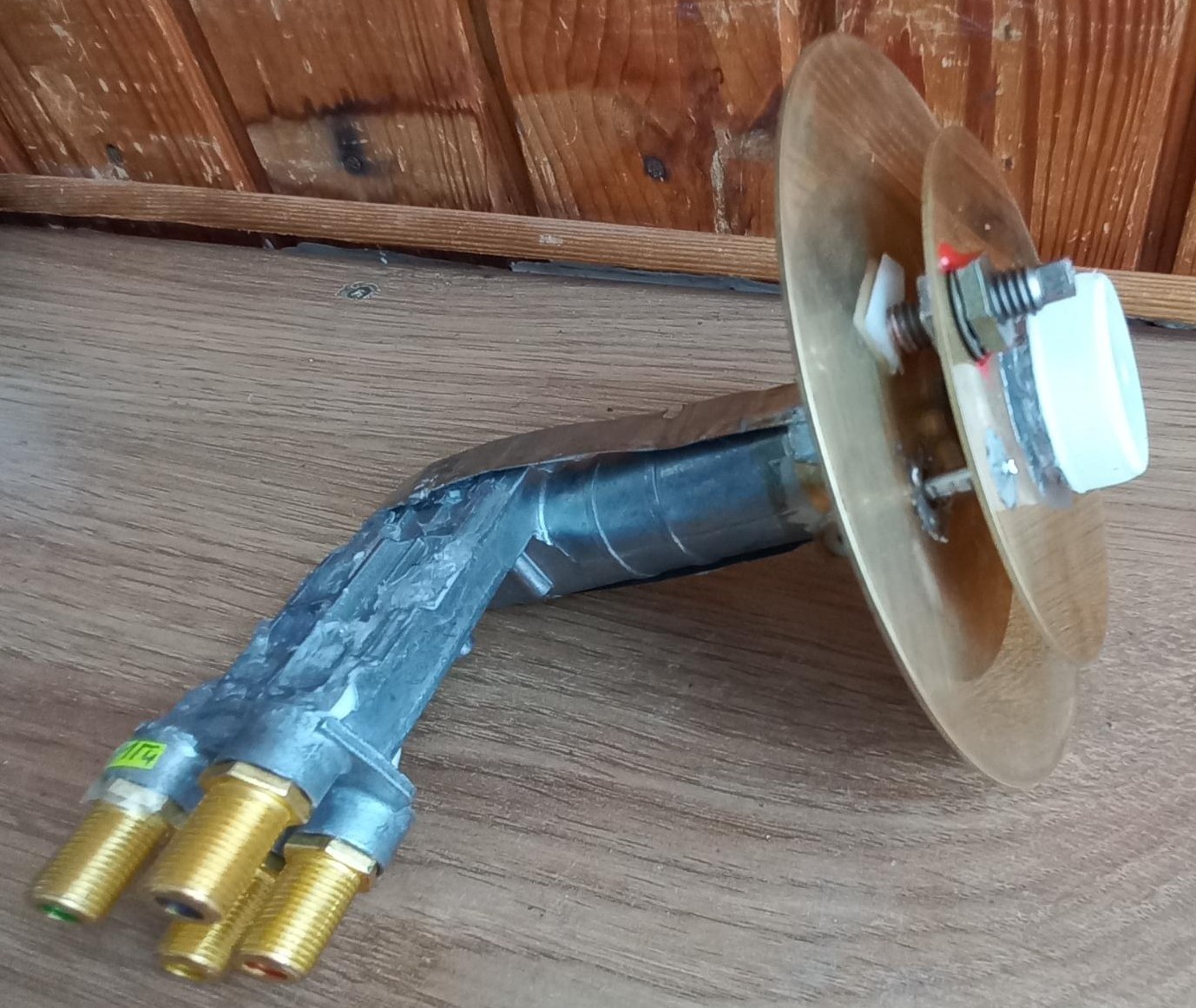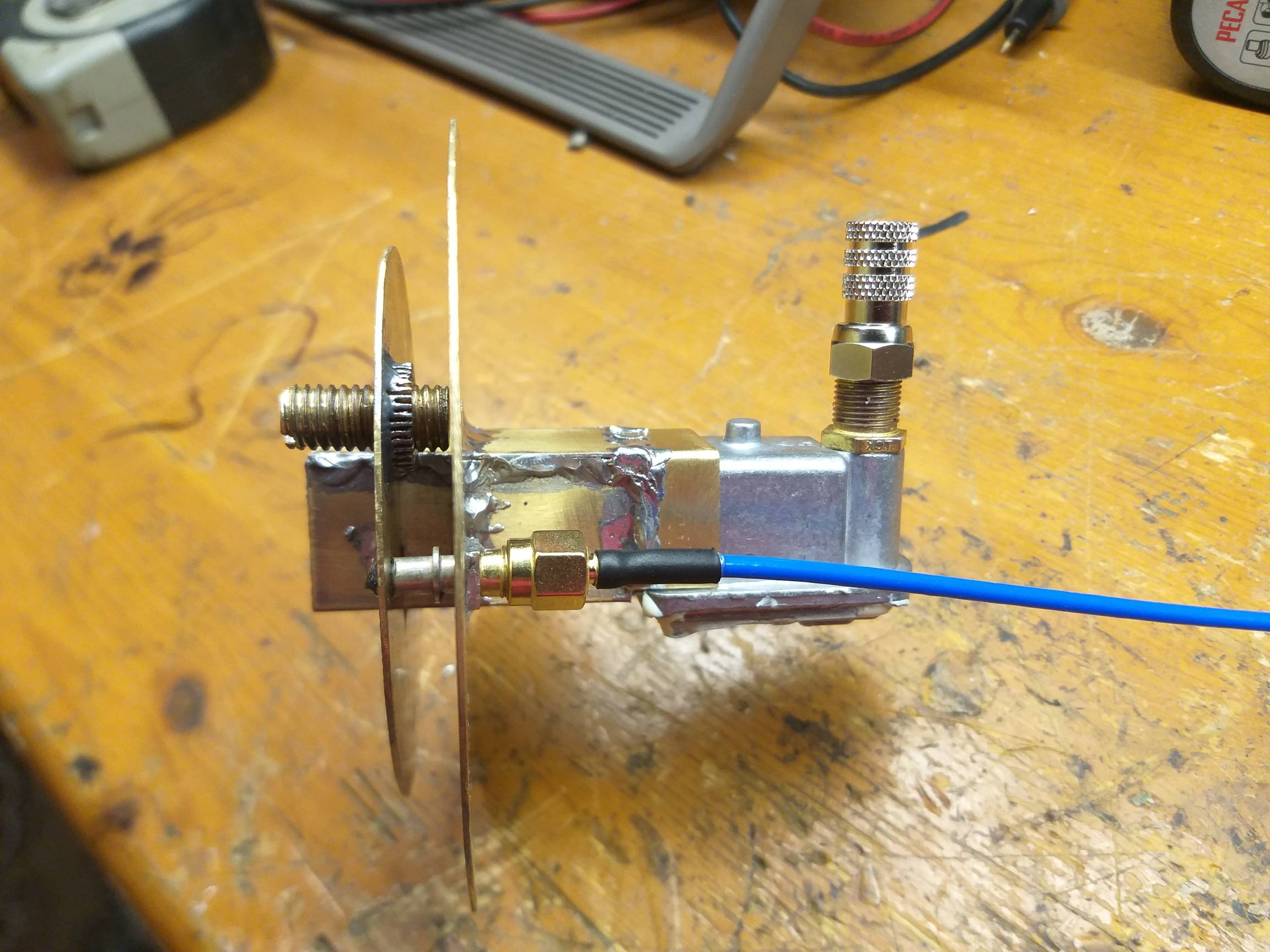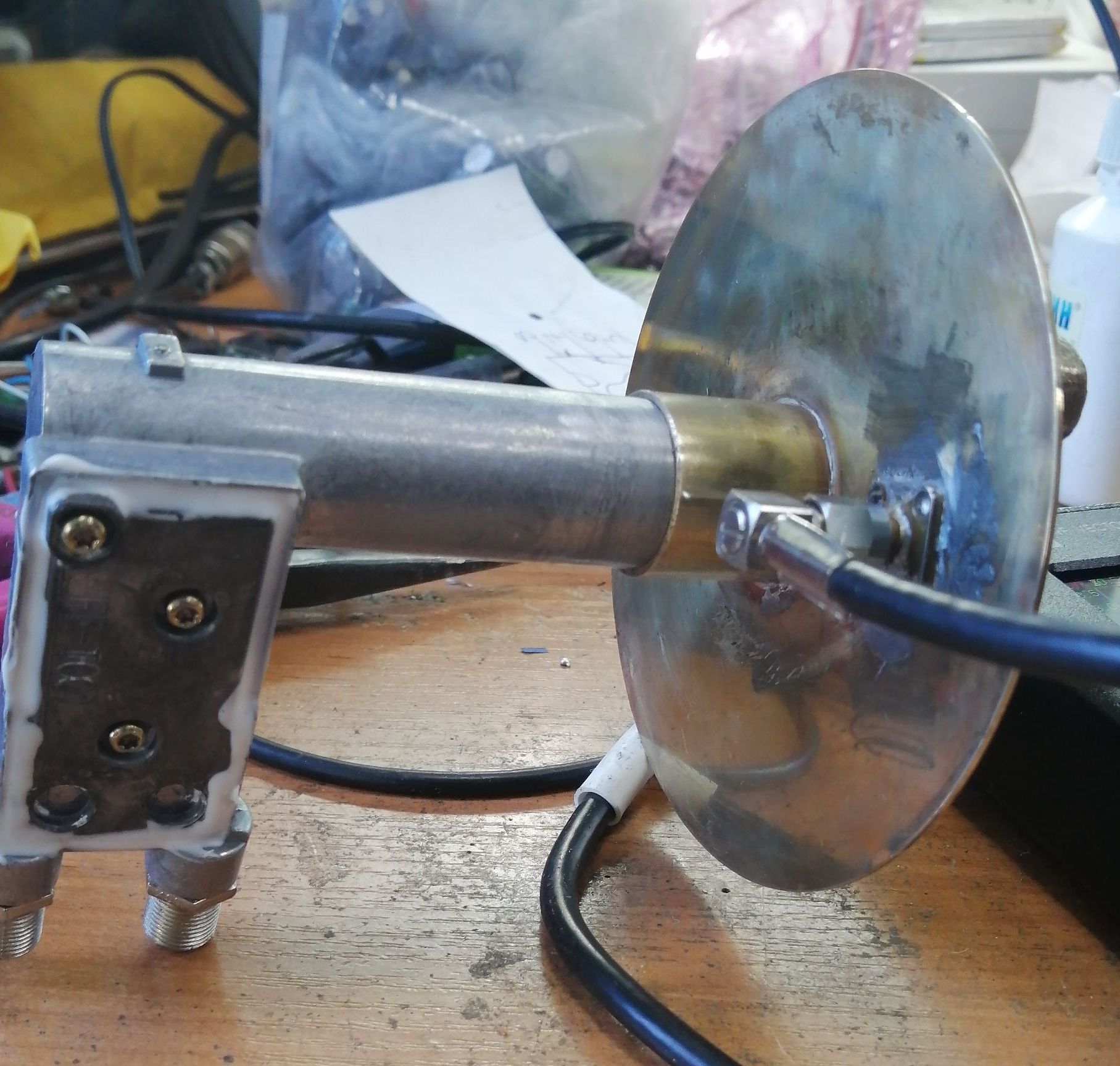 3.Напаял на рефлектор разъем СМА, а на его центральный вывод - штырь: