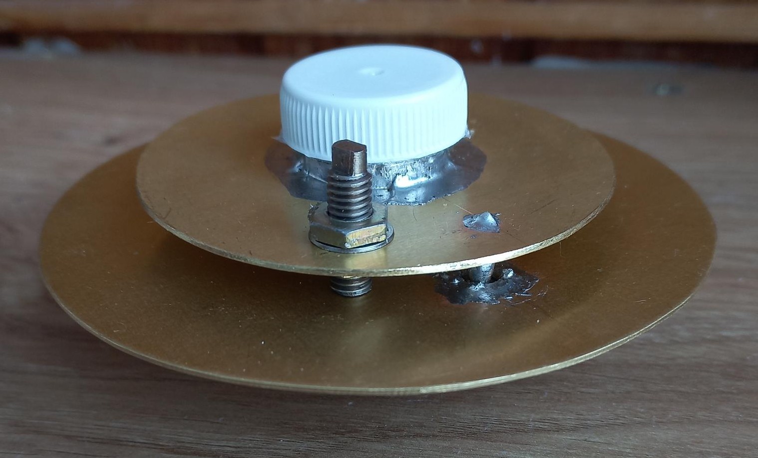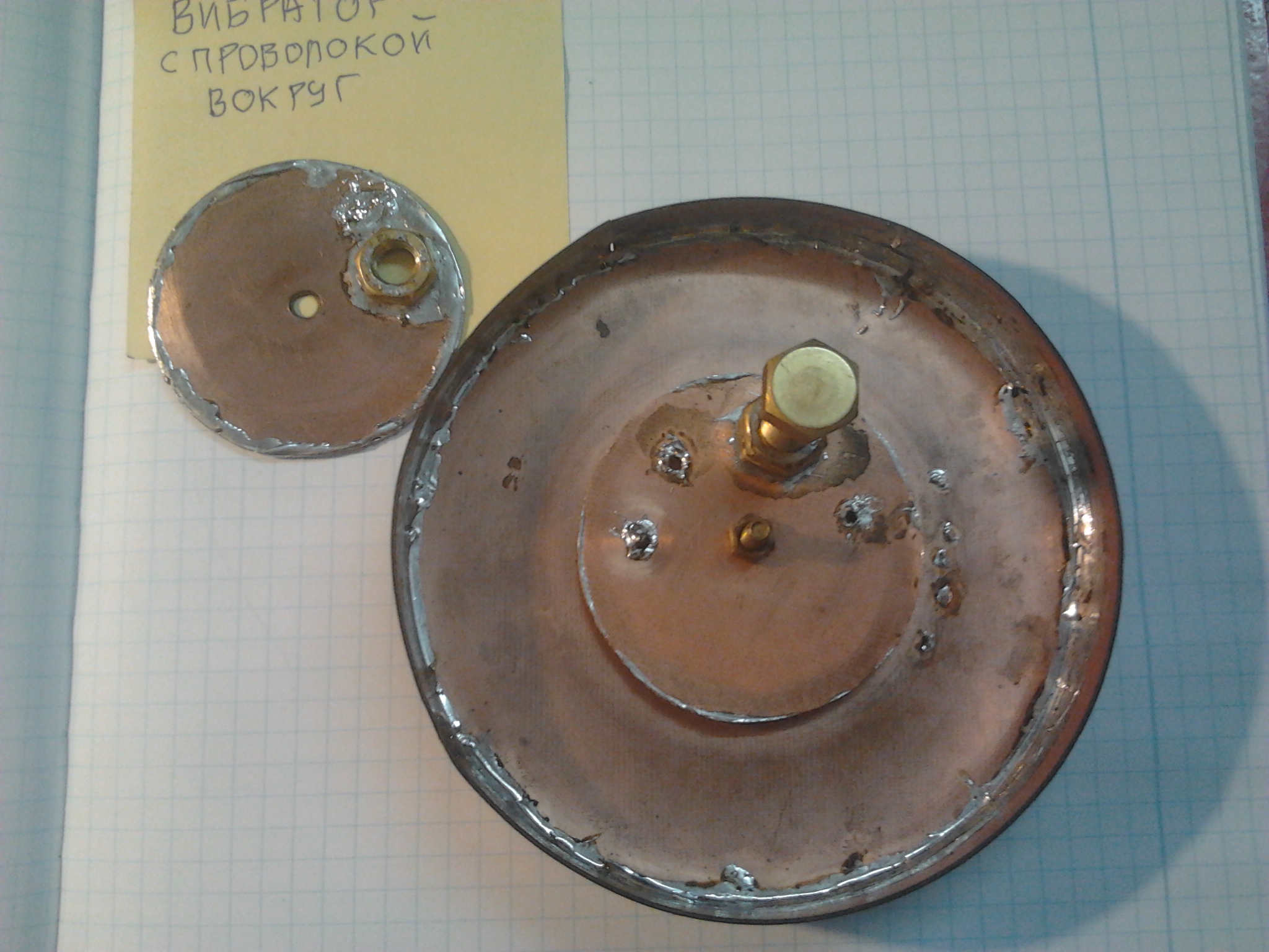 4.Напаял на диск вибратора низкопрофильную гайку М6, с внутренней строны.
