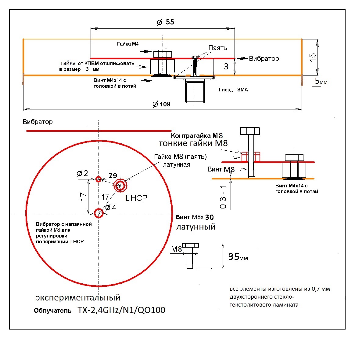 1.Вырезал два диска: рефлектор - Ø100мм и вибратор -Ø71,5мм.