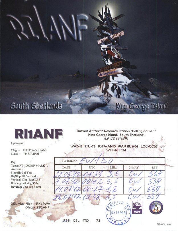 по ЛОТВ: VP8 - SOUTH SHETLAND ISLANDS RI1ANF