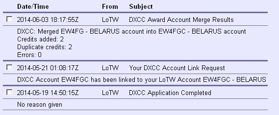 Все понятно, вот только GL-у даже извещения не придетEW4DX писал(а):Немного не так.Вчера у тебя появился в LoTW CFM c EU4AG на 14MHz (новый бэнд EU/EW). А сегодня подтвердился EW4GL на этом же бэнде. И ты хочешь заявить на 20-ке именно GL-а (друган ведь,