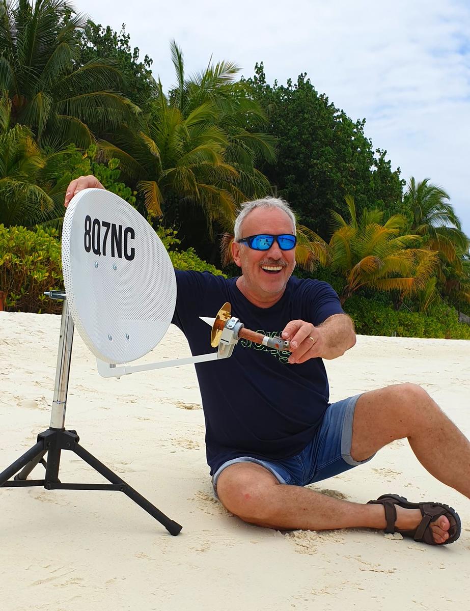 В основном активен на SAT QO100 с SDR PLUTO, 10 Вт, блюдо 35 см
