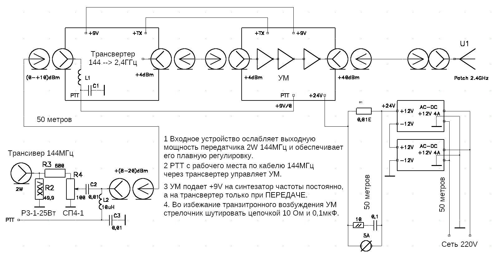 Схема радиостанции для работы через QO-100