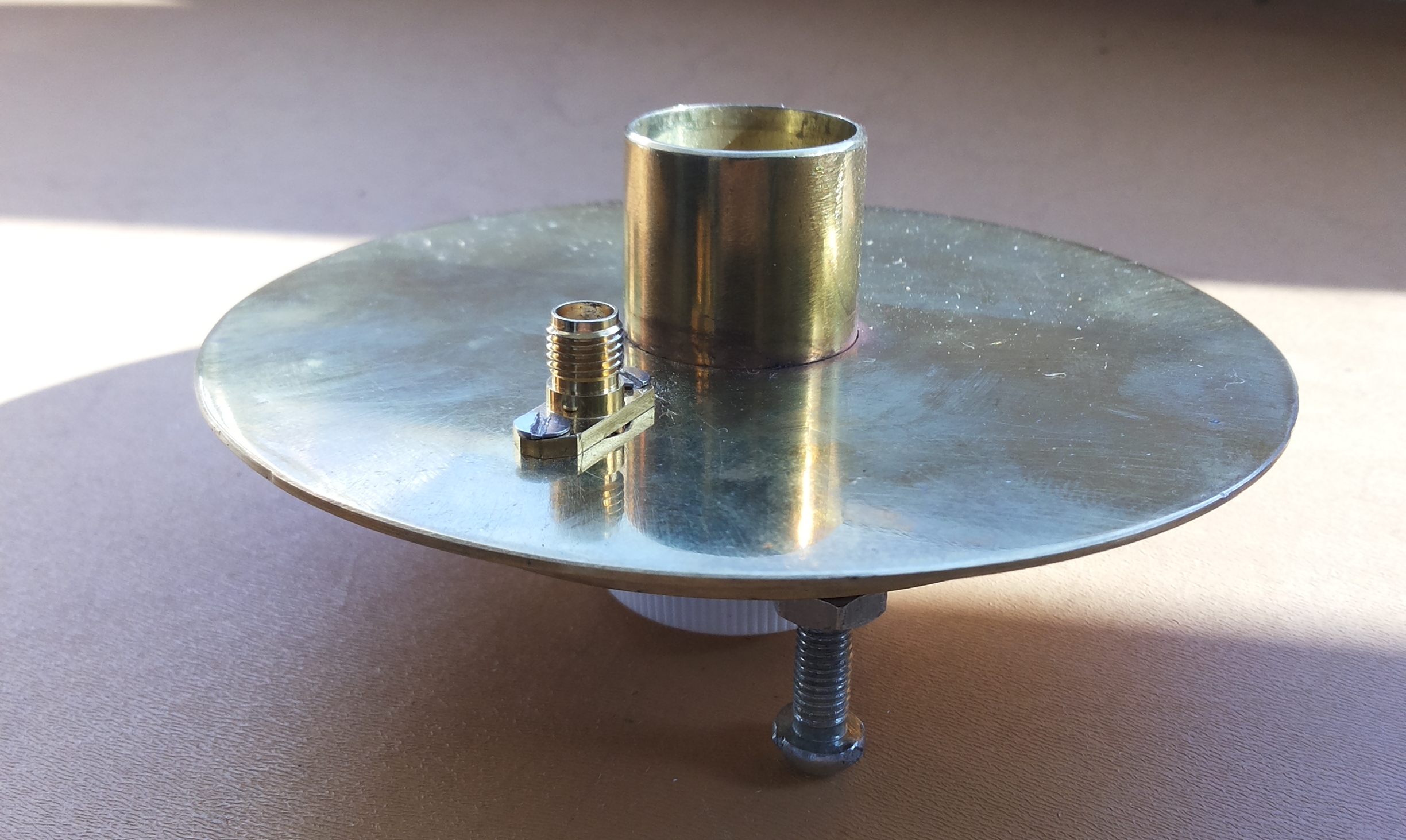 При использовании для рефлектора фольгированного двухстороннего текстолита нужно спаять фольгой обе стороны диска внутри отверстия Ø4,6мм до установки SMA.