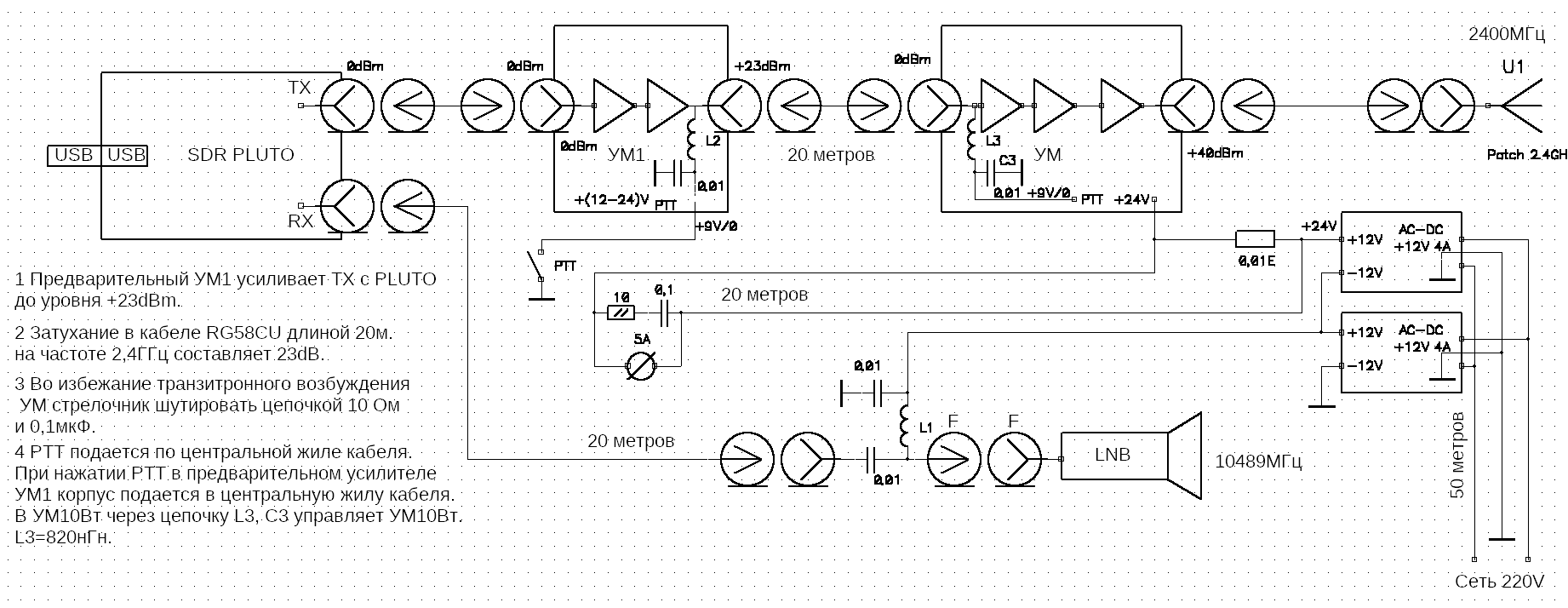 Теперь про Облучатель параболы 2400, на который качаем мощность передатчика