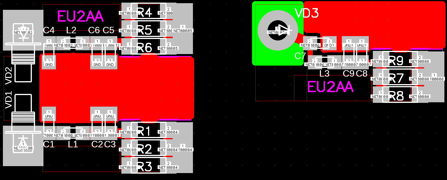 VD1,VD2,VD4 - LD0805 - 1шт. ЗЕЛЕНЫЕ