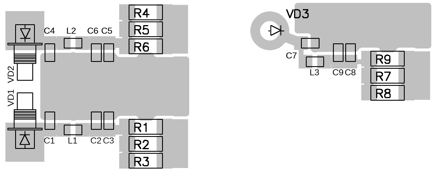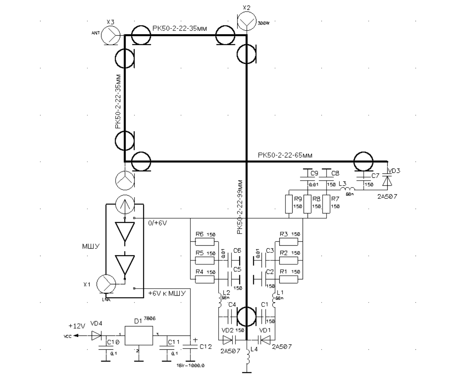 Это означает, что если P-I-N-диод 2А507А скоммутирует мощность +30dBm(1Вт), то каждое такое λ/4 или λ/2-звено сможет коммутировать +60dBm(1кВт).