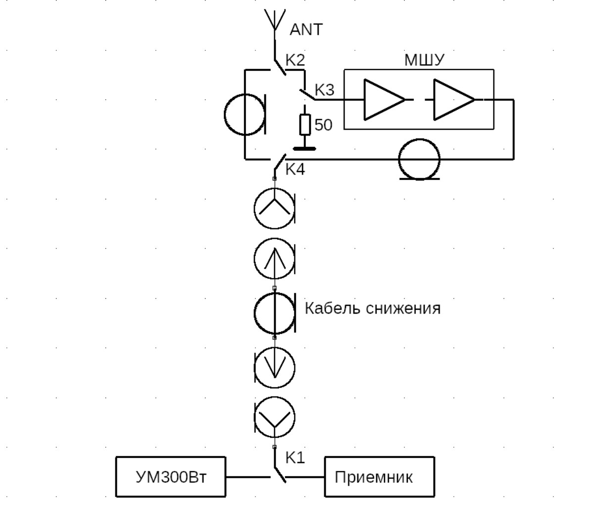 Кабель с малыми потерями используется только для тракта ПЕРЕДАЧИ от УМ300Вт до разъема Х2.