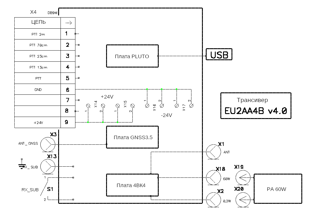 К разъему Х2 можно подключить антенну и МШУ любого диапазона, от 70МГц до 6ГГц.