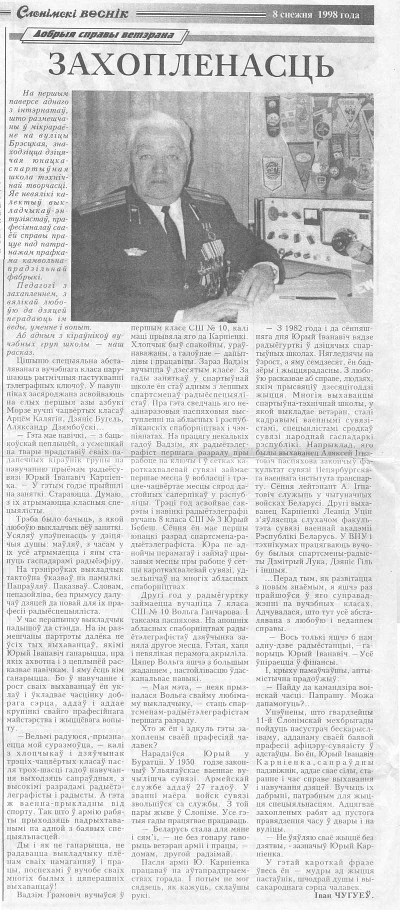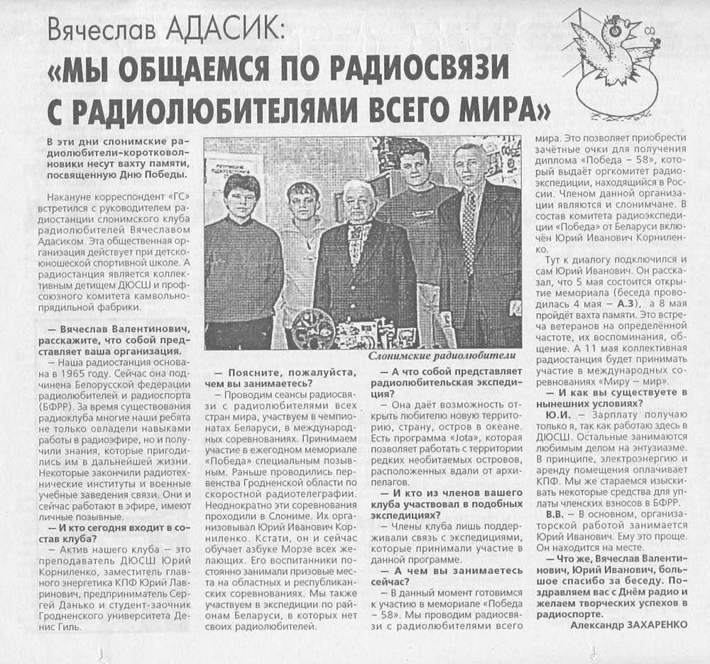 Если кто-то узнал из газетной выписки себя, не поленитесь напишите о своём первом наставнике, который открыл Вам необыкновенную музыку морзянки.