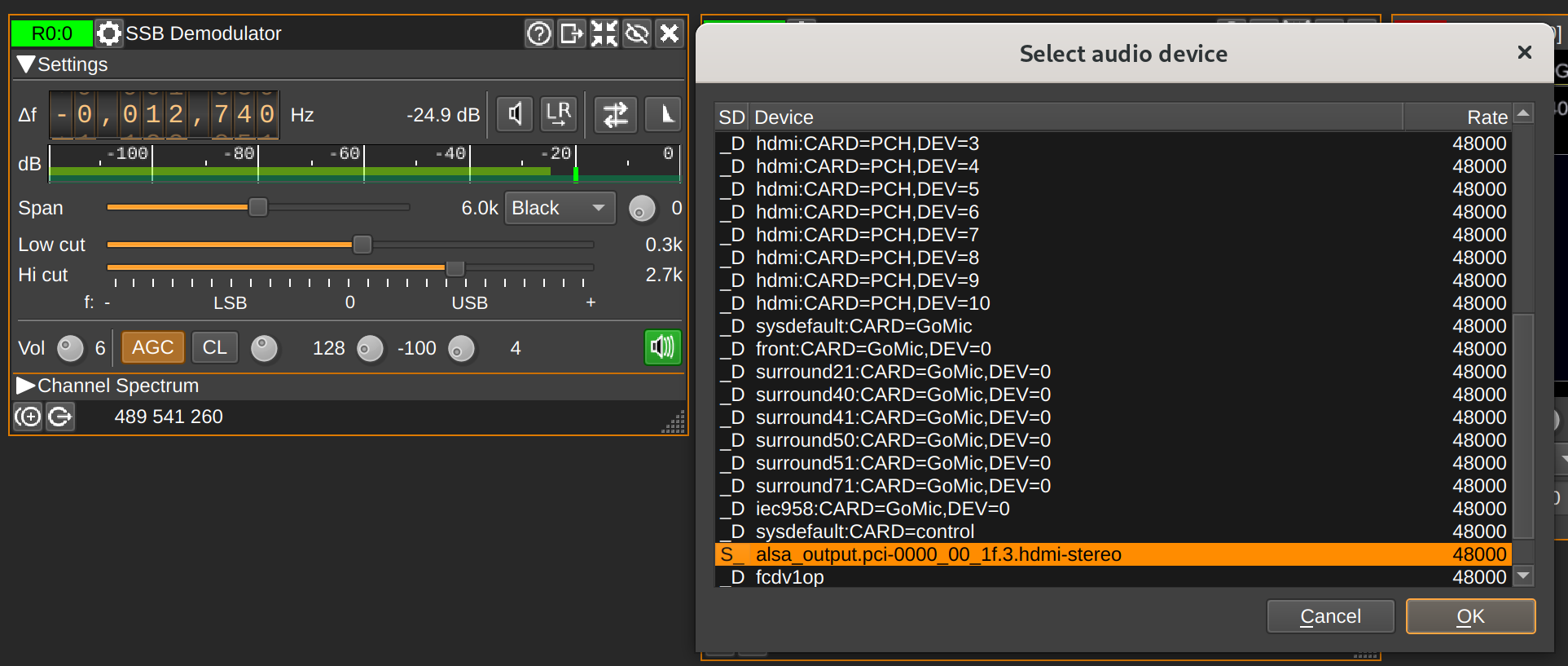 Щелчком правой клавиши мыши по динамику в окне SSB Demodulator открывается окно настройки